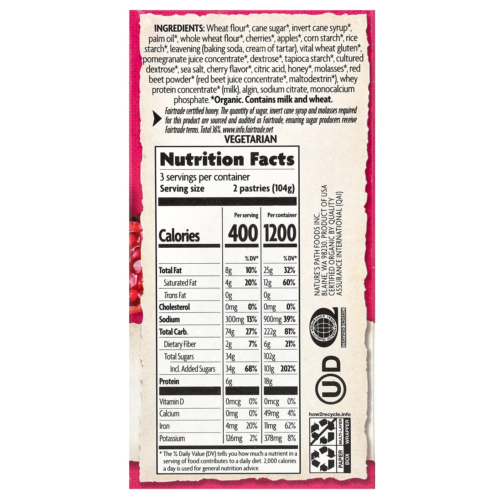 Пшеничная мука*, тростниковый сахар*, инвертный тростниковый сироп*, пальмовое масло*, цельнозерновая пшеничная мука*, вишня*, яблоки*, кукурузный крахмал*, рисовый крахмал*, разрыхлитель (пищевая сода, винный камень), живой пшеничный глютен*, концентрат гранатового сока*, декстроза*, тапиоковый крахмал*, выращенная декстроза*, морская соль, ароматизатор «Вишня»*, лимонная кислота, мед*, патока*, порошок из свеклы* (концентрат сока свеклы*, мальтодекстрин*), концентрат сывороточного протеина* (молоко), альгин, цитрат натрия, монокальцийфосфат.