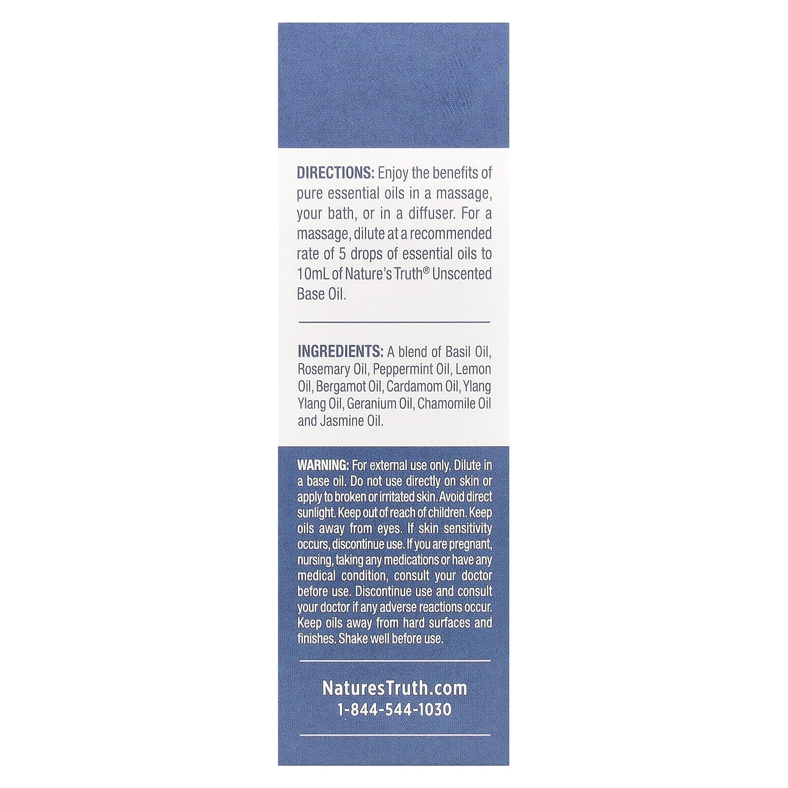 Наслаждайтесь преимуществами чистых эфирных масел во время массажа, в ванне или в диффузоре. Для массажа разбавьте рекомендуемую дозу: 5 капель эфирных масел в 10 мл базового масла Nature's Truth® без запаха.