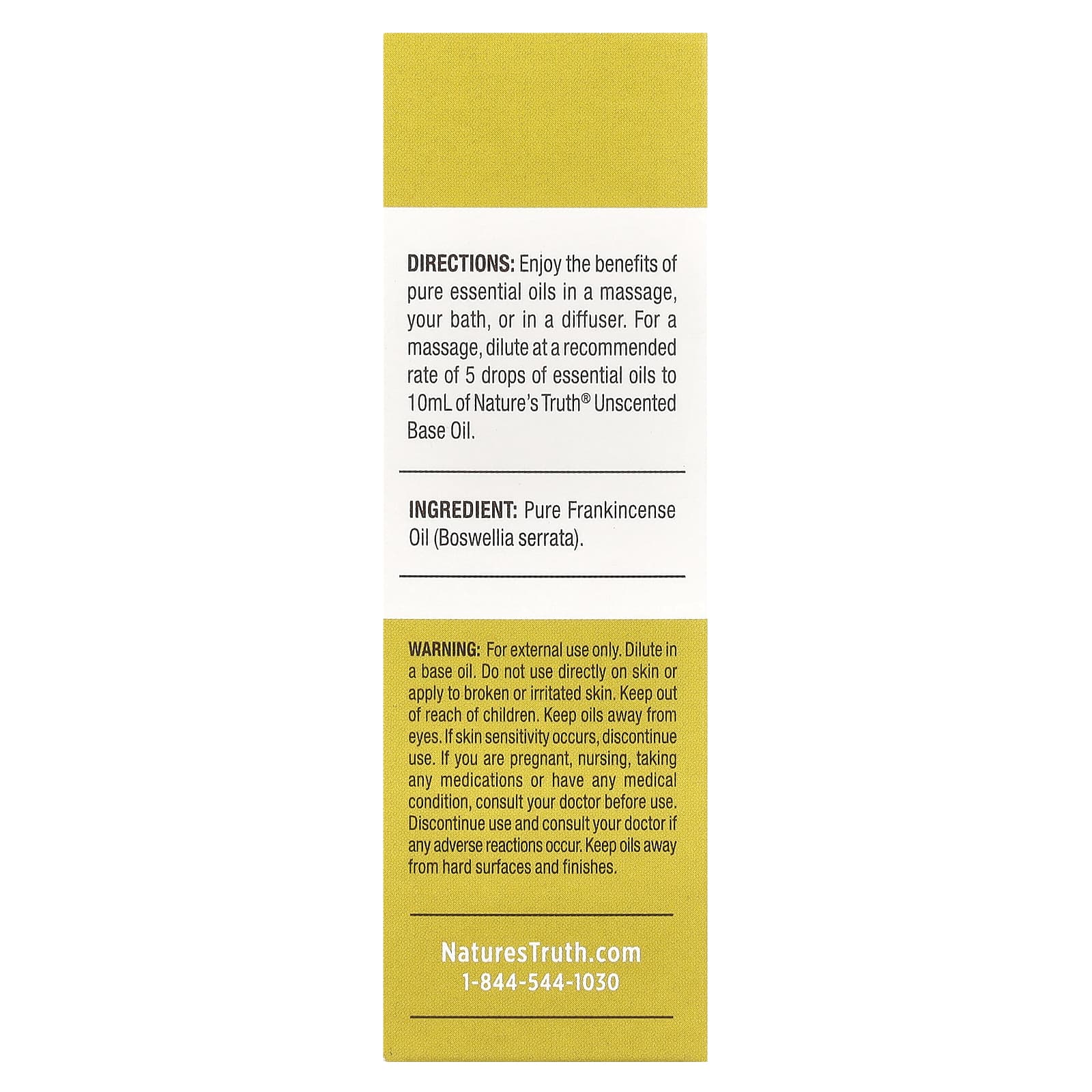 Наслаждайтесь полезными свойствами чистых эфирных масел во время массажа, принимая ванну или включив диффузор. Для массажа разбавьте согласно рекомендациям: 5 капель эфирного масла на 10 мл базового масла без запаха от Nature's Truth®.