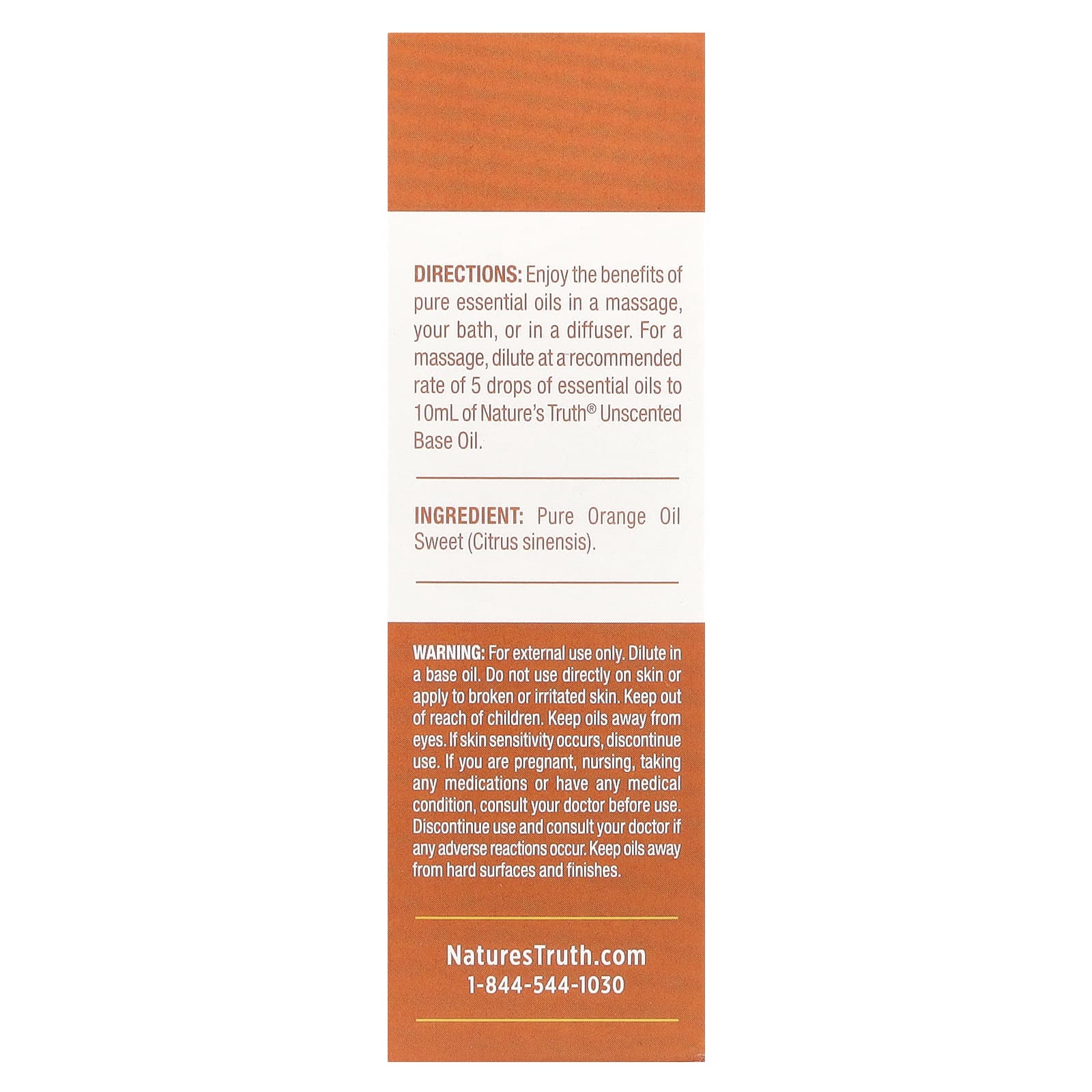 Наслаждайтесь полезными свойствами чистых эфирных масел во время массажа, принимая ванну или включив диффузор. Для массажа разбавьте согласно рекомендациям: 5 капель эфирного масла на 10 мл базового масла без запаха от Nature's Truth®.
