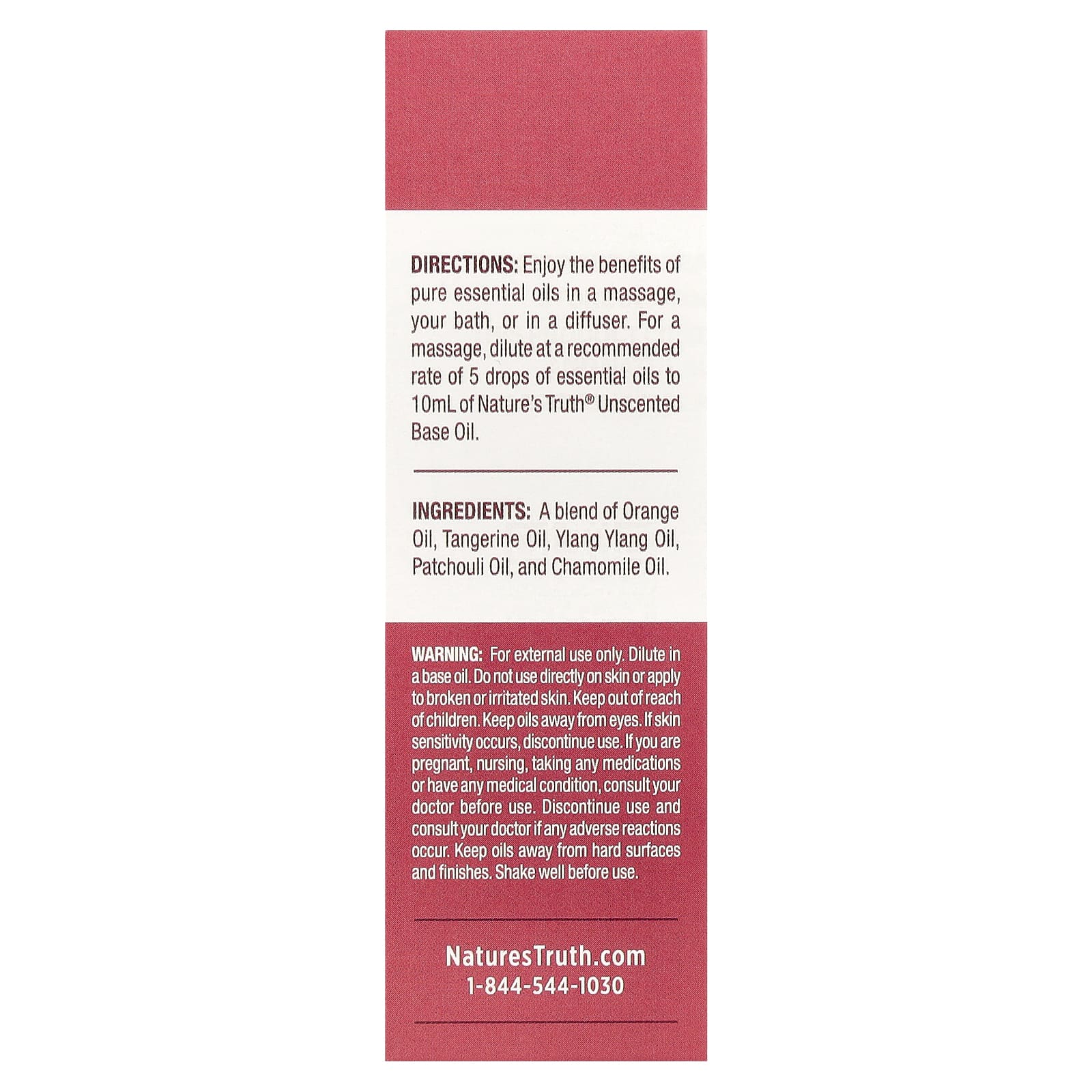 Наслаждайтесь полезными свойствами чистых эфирных масел во время массажа, принимая ванну или включив диффузор. Для массажа разбавьте согласно рекомендациям: 5 капель эфирного масла на 10 мл базового масла без запаха от Nature's Truth®.