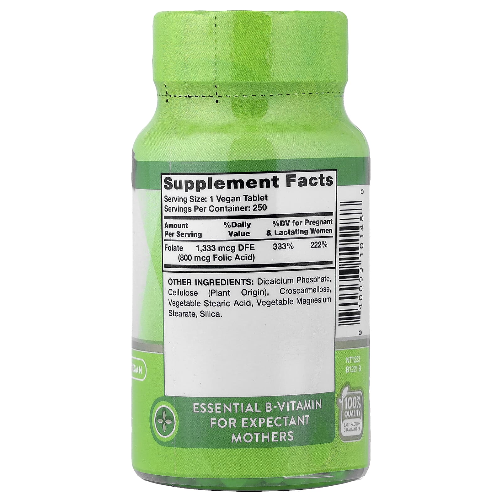 | Фолат | 1333 мкг DFE (800 мкг фолиевой кислоты) | 333% | 222% |
