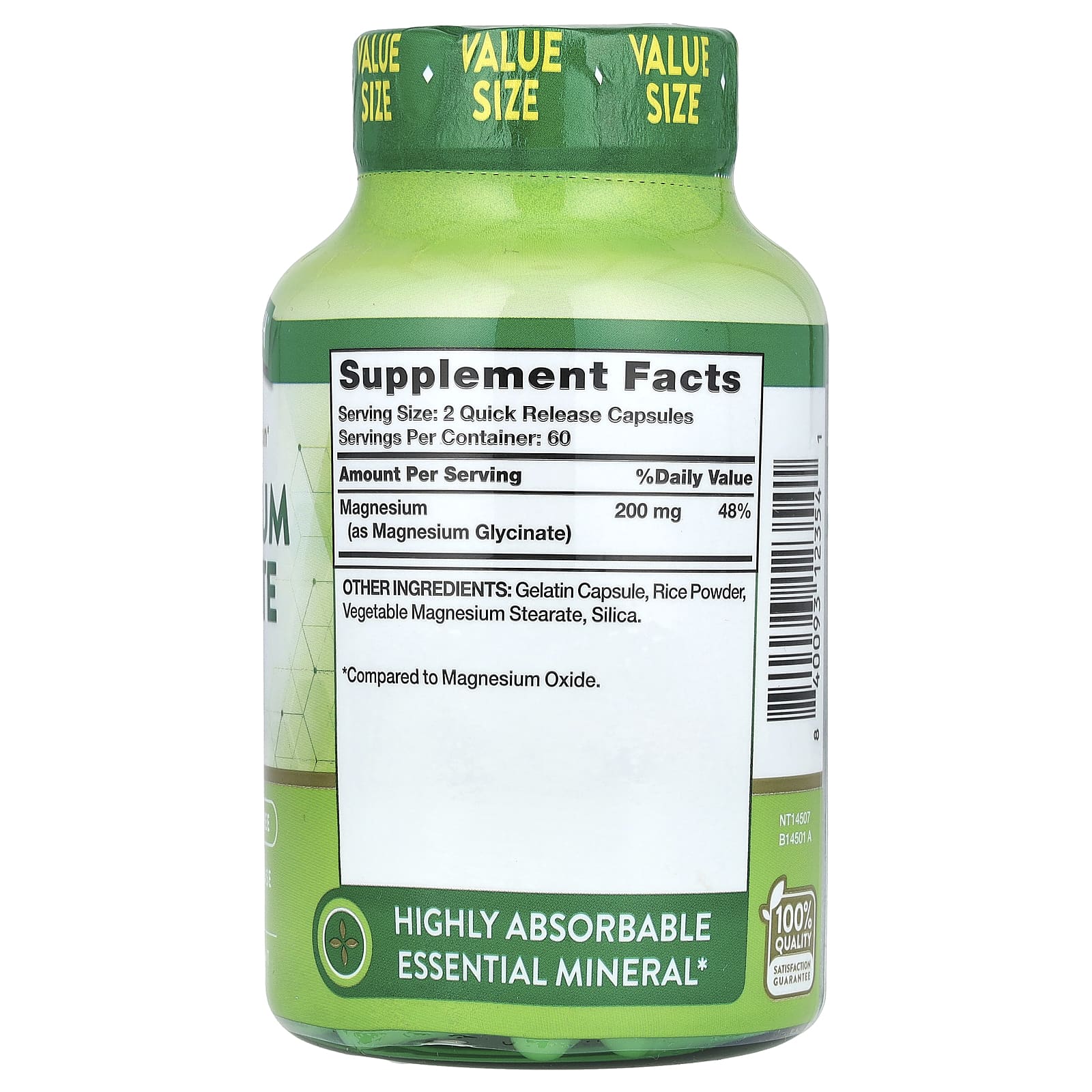 Каждая порция наших капсул с быстрым высвобождением содержит 200 мг этого важного минерала в виде глицината магния. Наша формула обеспечивает превосходное усвоение и является надежным способом включить этот важный минерал в свой распорядок дня. Кроме того, этот недорогой флакон содержит 120 капсул, то есть примерно на два месяца!