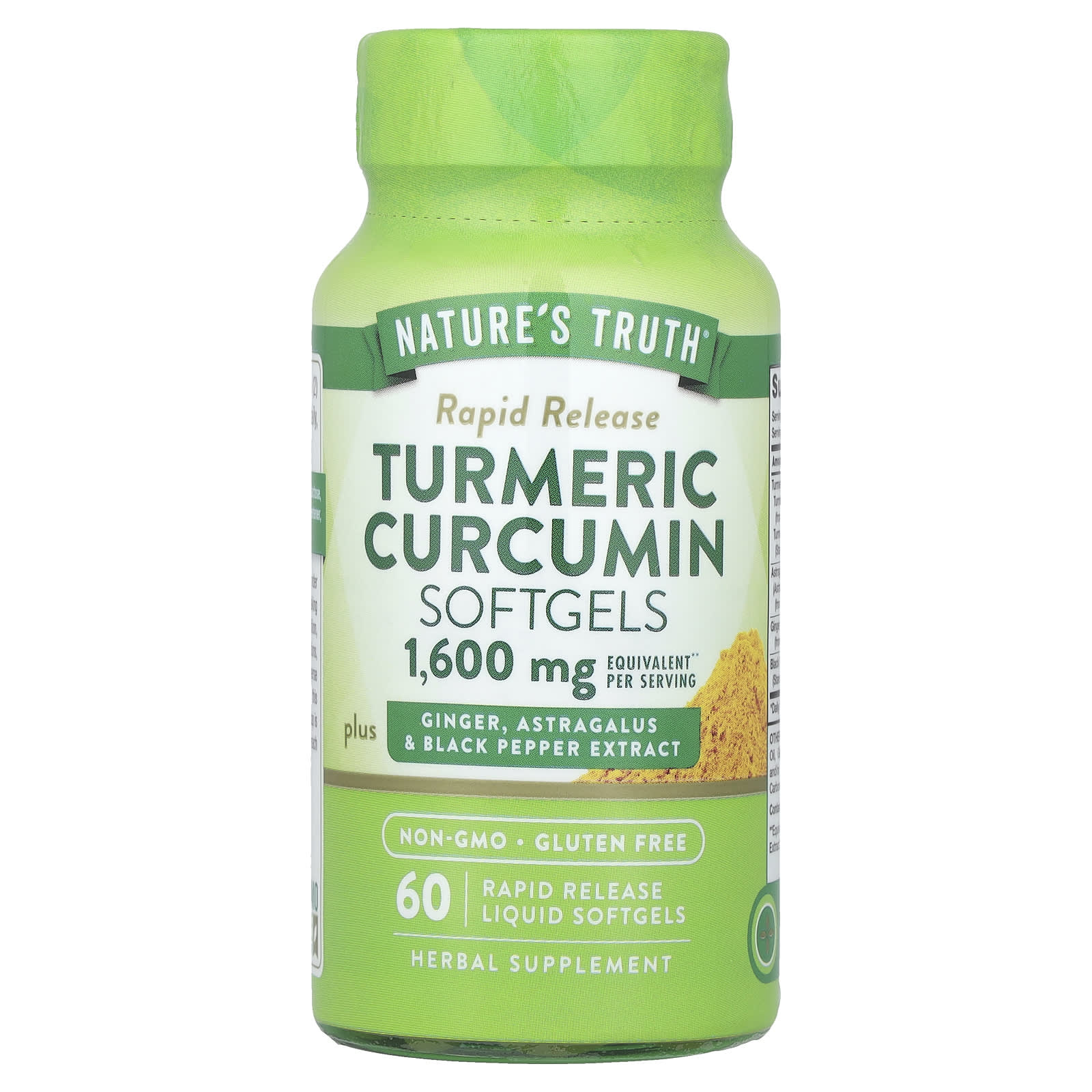 Мягкие гелевые капсулы с куркумой и куркумином с быстрым высвобождением от Nature's Truth® не похожи ни на какие другие! В нашей уникальной формуле используются передовые технологии для объединения куркумы, имбиря и астрагала в революционную мягкую гелевую капсулу с быстрым высвобождением. Эта синергетическая смесь аюрведических трав усилена стандартизированным экстрактом черного перца для дополнительной поддержки.