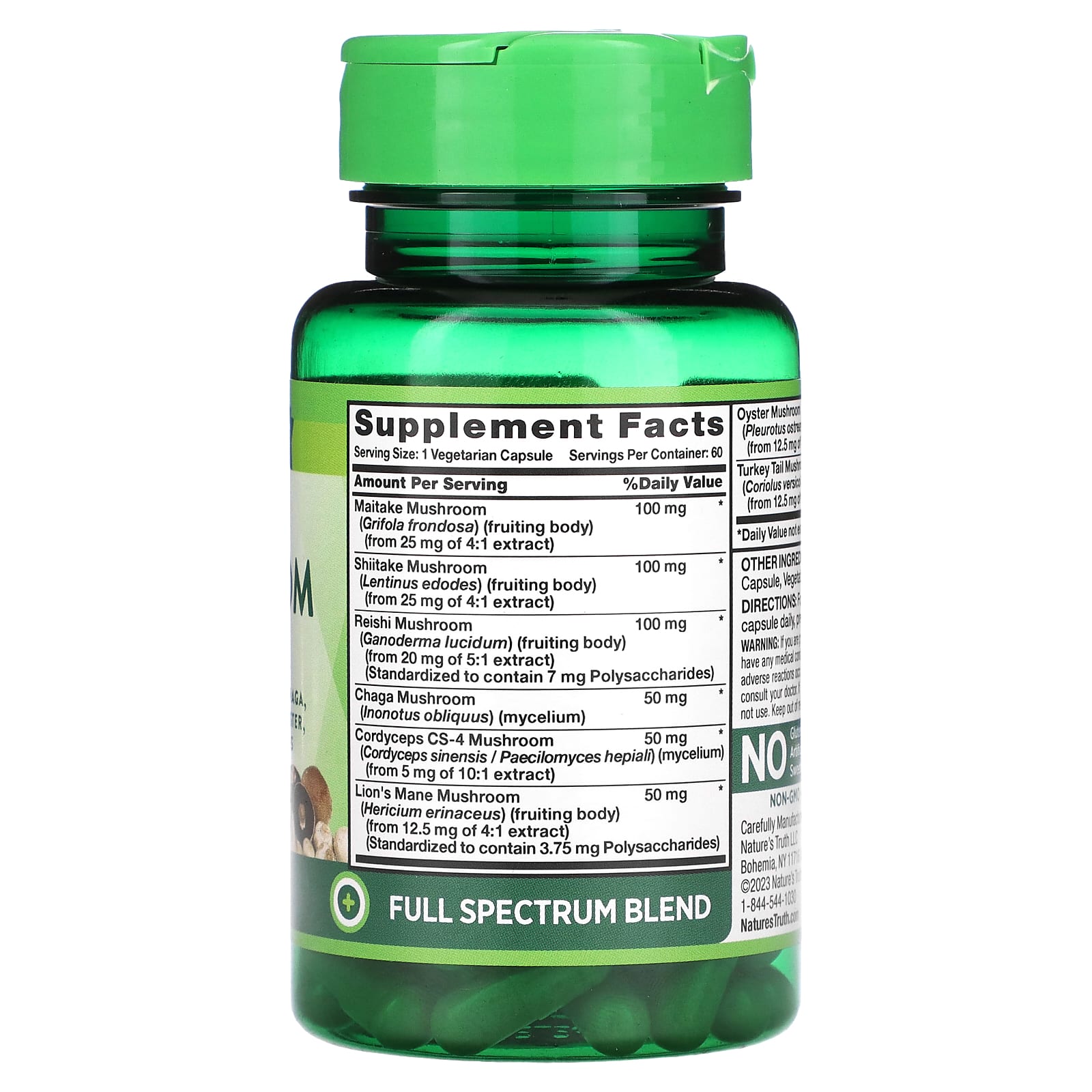 Комплекс грибов Nature's Truth® Super 8 в капсулах — это эффективный комплекс самых популярных грибов полного спектра действия в одной капсуле для приема раз в день.