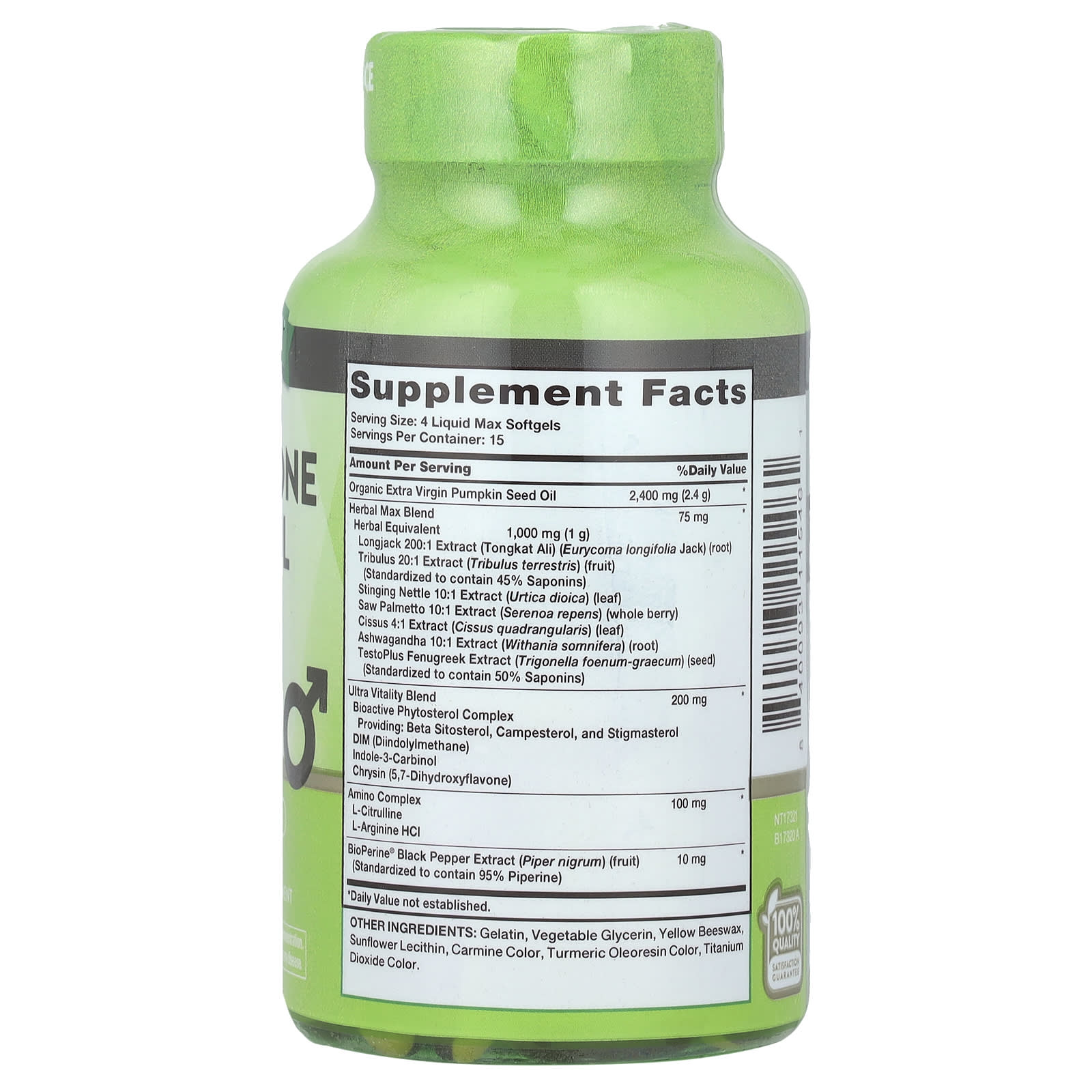 Каждая порция наших капсул Testosterone Powerful содержит 2400 мг органического масла из семян тыквы первого отжима; 75 мг смеси Herbal Max; 200 мг смеси Ultra Vitality; 100 мг аминокислотного комплекса; и 10 мг экстракта черного перца BioPerine®. Активные травы, такие как тонгкат али, трибулус, сереноа и другие, включены в состав, поскольку они специально разработаны и предназначены для мужчин. Эта мужская добавка содержит самые нужные мужчинам мощные соединения в виде жидких капсул.