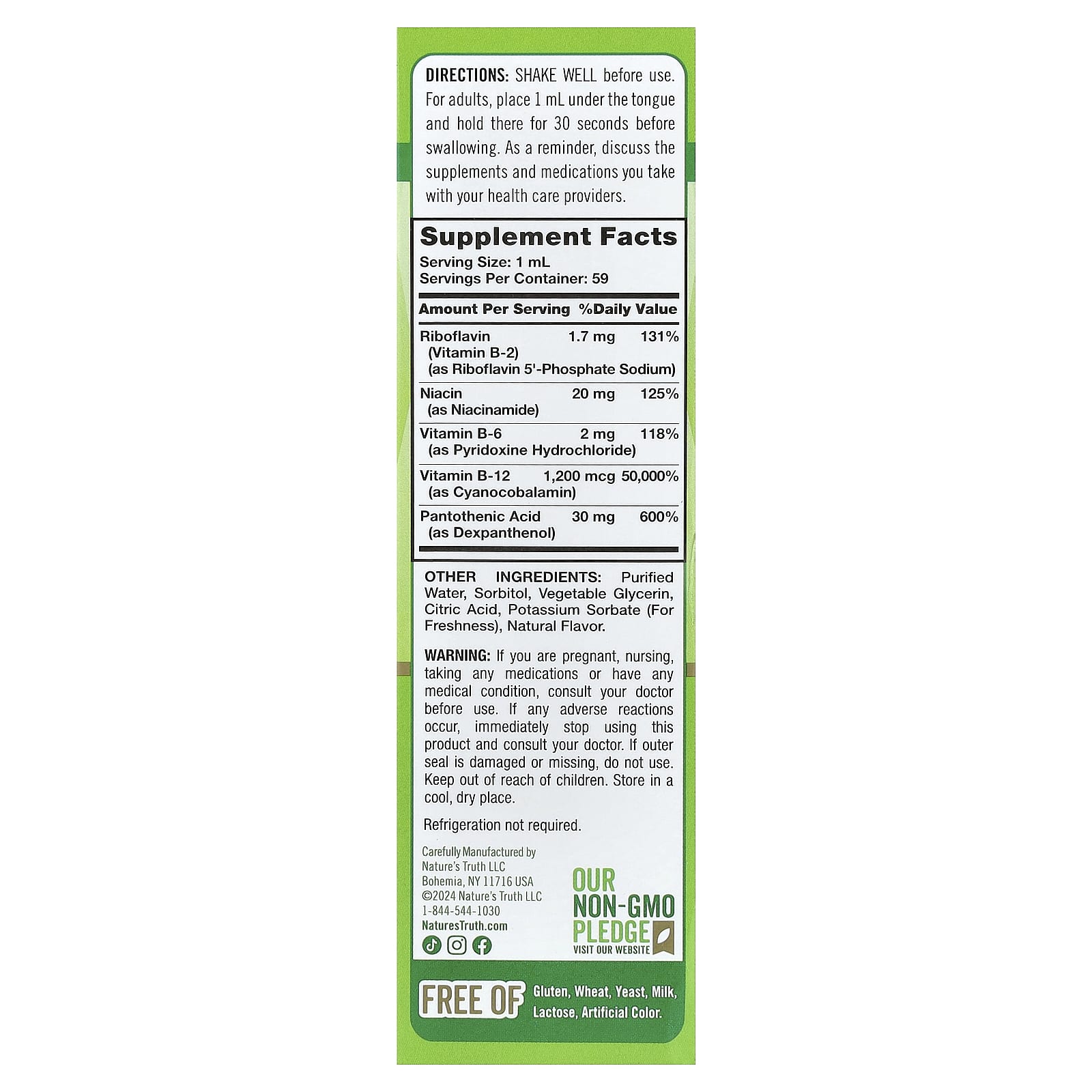 Жидкий сублингвальный комплекс витаминов группы B с витамином B12 имеет восхитительный натуральный ягодный вкус и является простым способом получить комплексную смесь основных витаминов группы B, в которых вы нуждаетесь больше всего. Эта искусно созданная формула содержит быстродействующую синергетическую смесь пяти важных витаминов группы B для поддержания здоровья и хорошего самочувствия: Рибофлавин, ниацин, пантотеновая кислота, витамины B6 и B12. Витамины группы B растворимы в воде, а это означает, что они должны пополняться в организме каждый день. Получите суточную дозу высокоэффективных витаминов группы B с помощью этой удобной для вегетарианцев добавки!