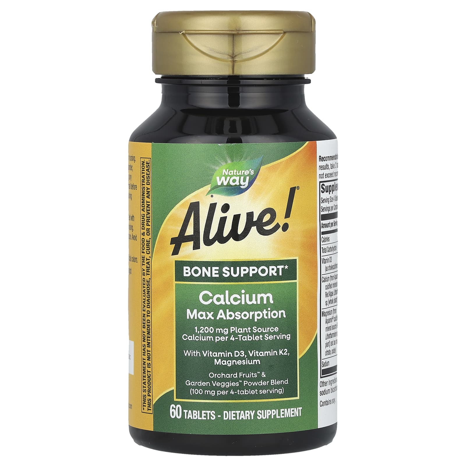 Содержит 1200 мг кальция растительного происхождения в каждой порции из 4 таблеток
