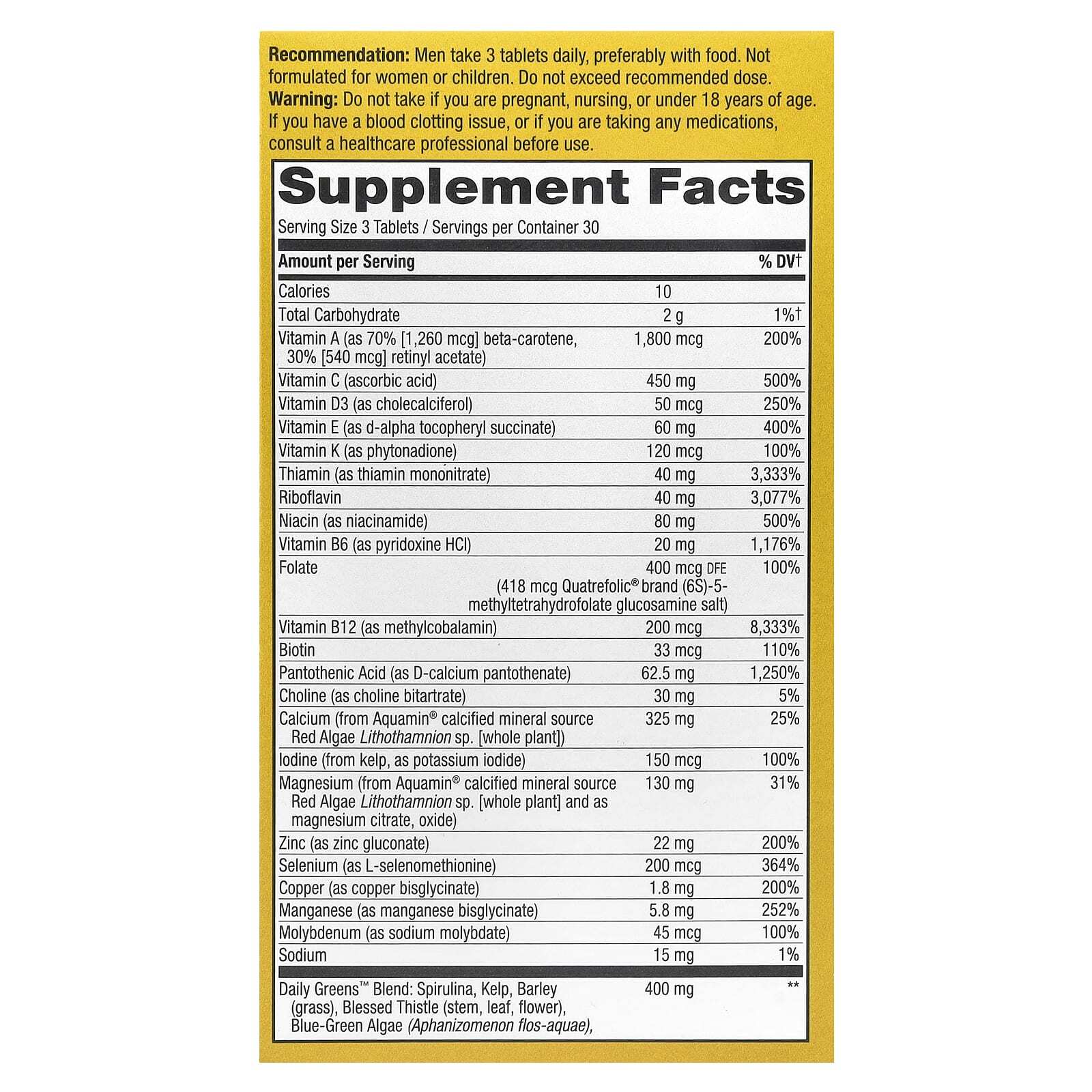 200% и более от суточной нормы 14 витаминов и минералов в каждой порции из 3 таблеток.