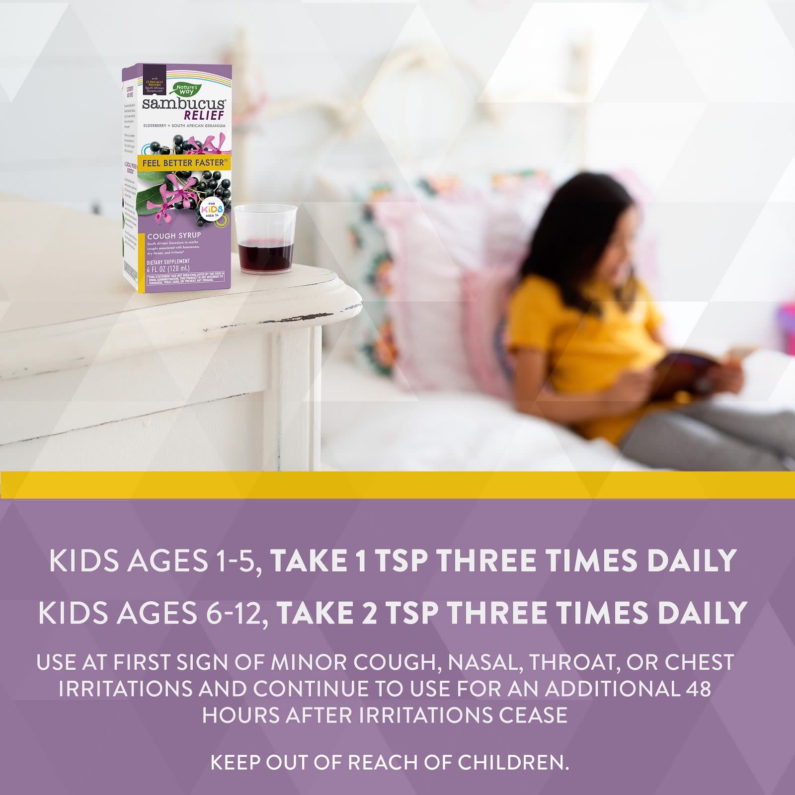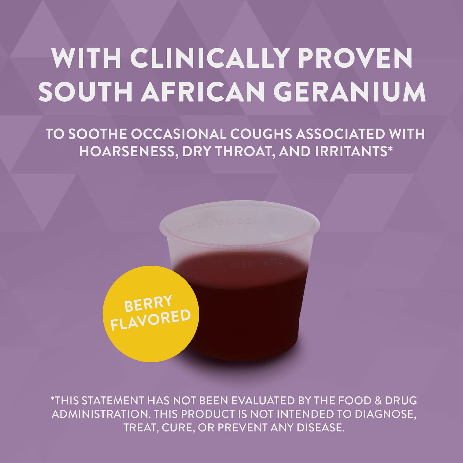 Экстракт корня южноафриканской герани успокаивает эпизодический кашель, вызванный хрипотой, сухостью в горле и раздражителями, а также уменьшает продолжительность и тяжесть незначительного раздражения носа, горла и груди.