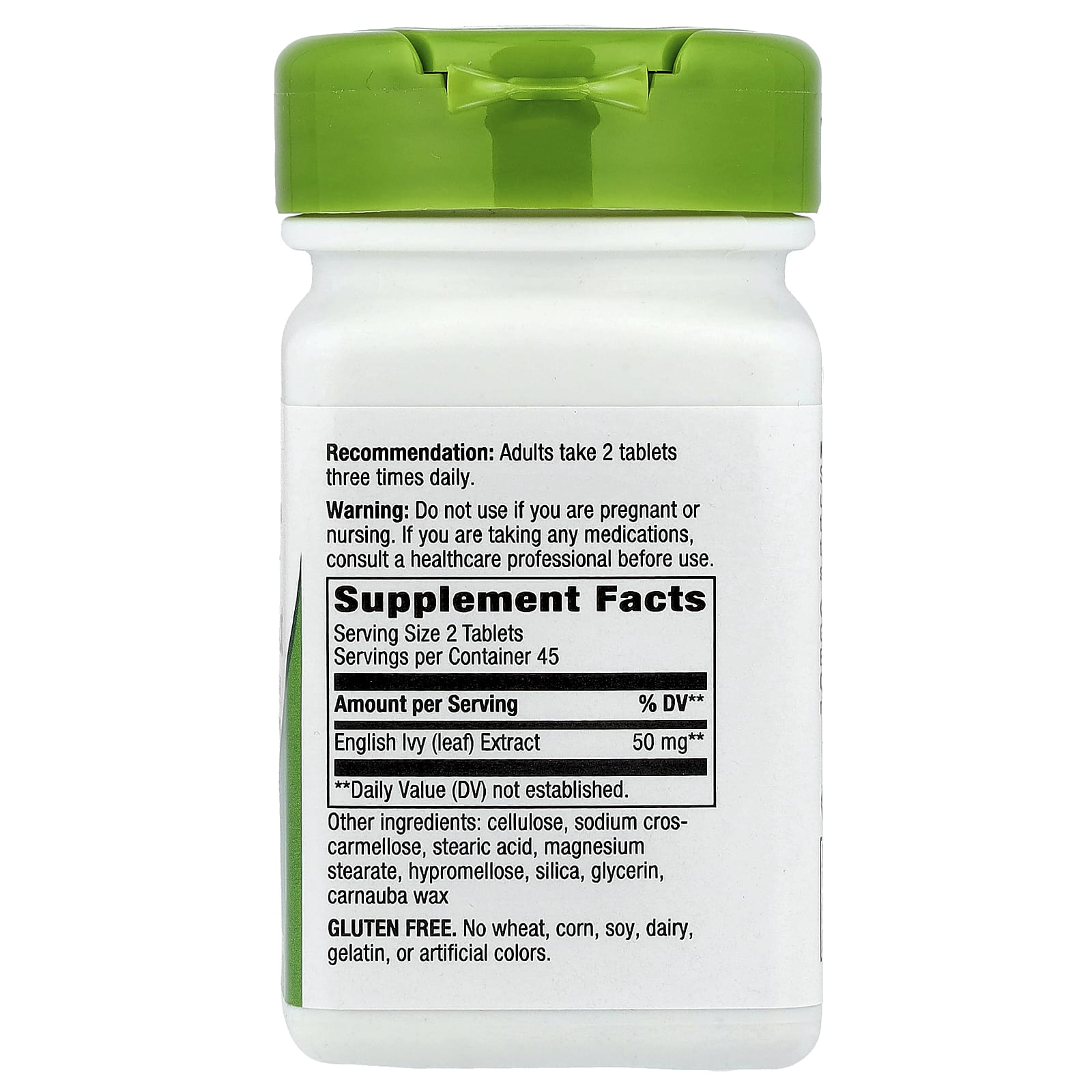 - Содержит 50 мг экстракта листьев плюща узколистного на порцию из 2 таблеток