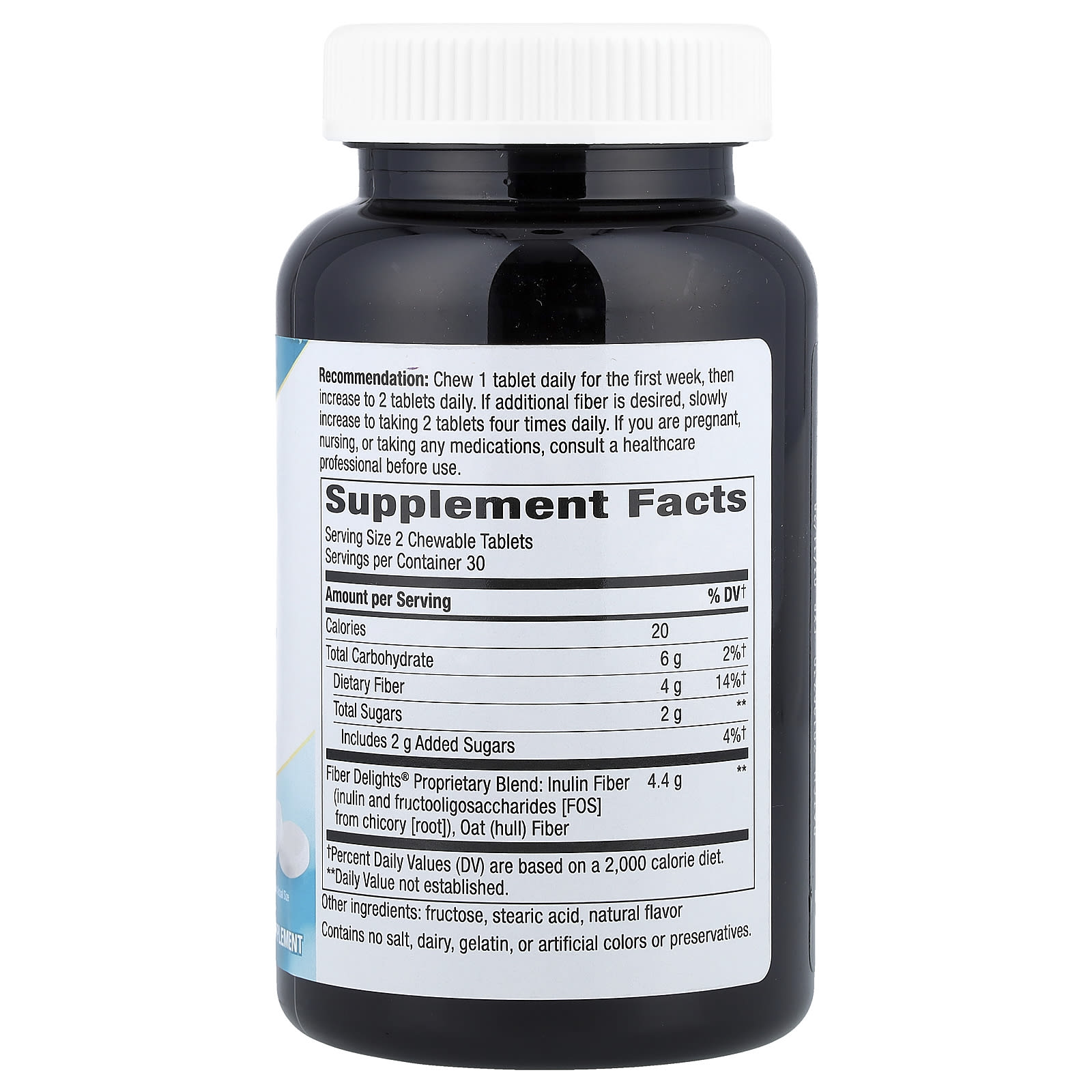 Содержит 4,4 г запатентованной смеси Fiber Delights® в 1 порции из 2 таблеток.