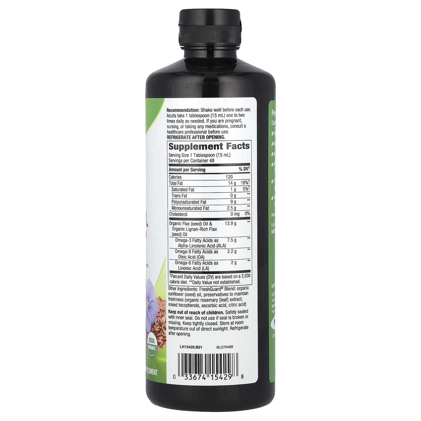 Nature's Way, органическое льняное масло, суперлигнан, 720 мл (24 жидк. унции)
