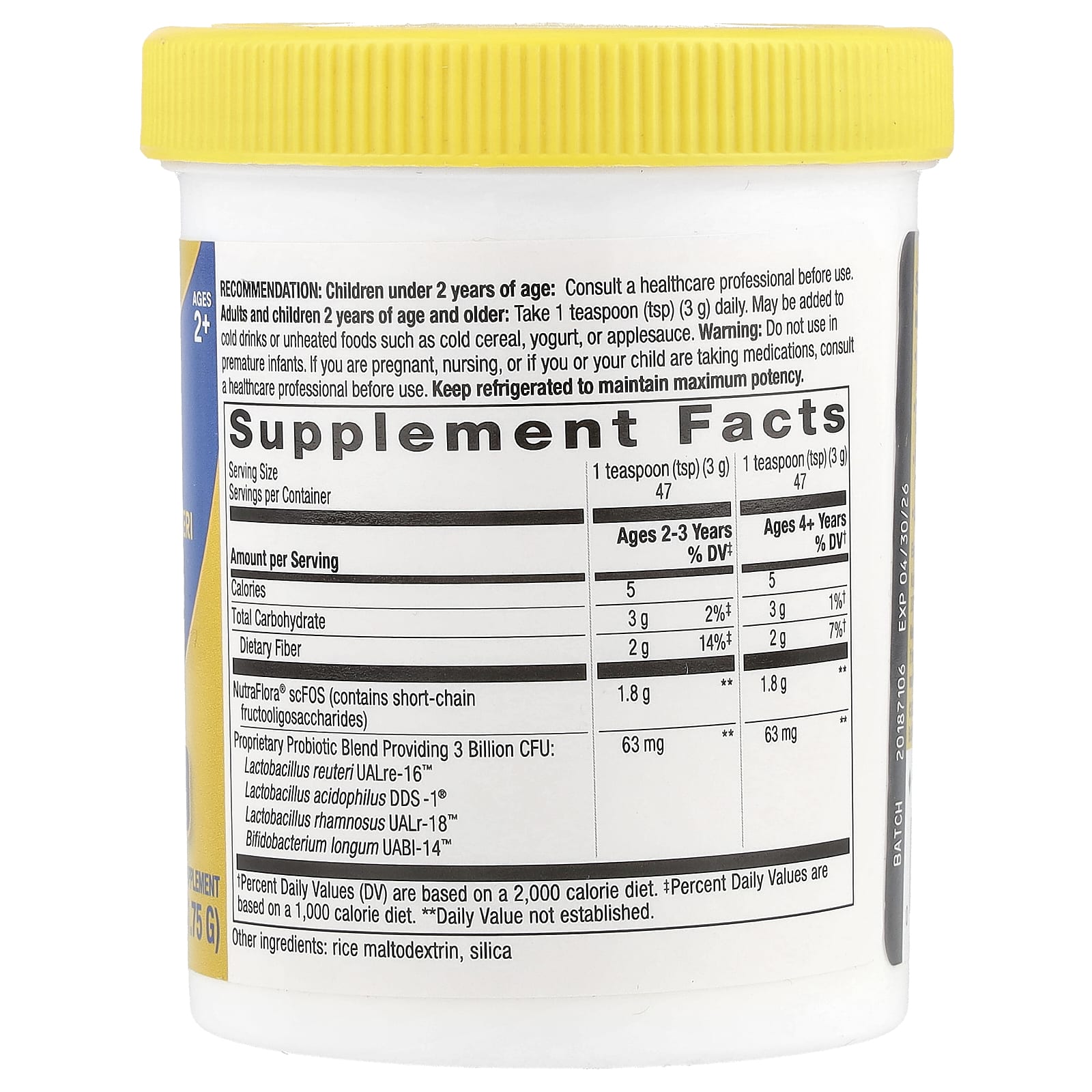 - Содержит лактобактерии реутери (L. reuteri) UALre-16™, ацидофильные лактобактерии (L. acidophilus) DDS-1 ®, лактобактерии рамнозус (L. rhamnosus) UALr-18™ и бифидобактерии лонгум (B. longum) UABI-14™