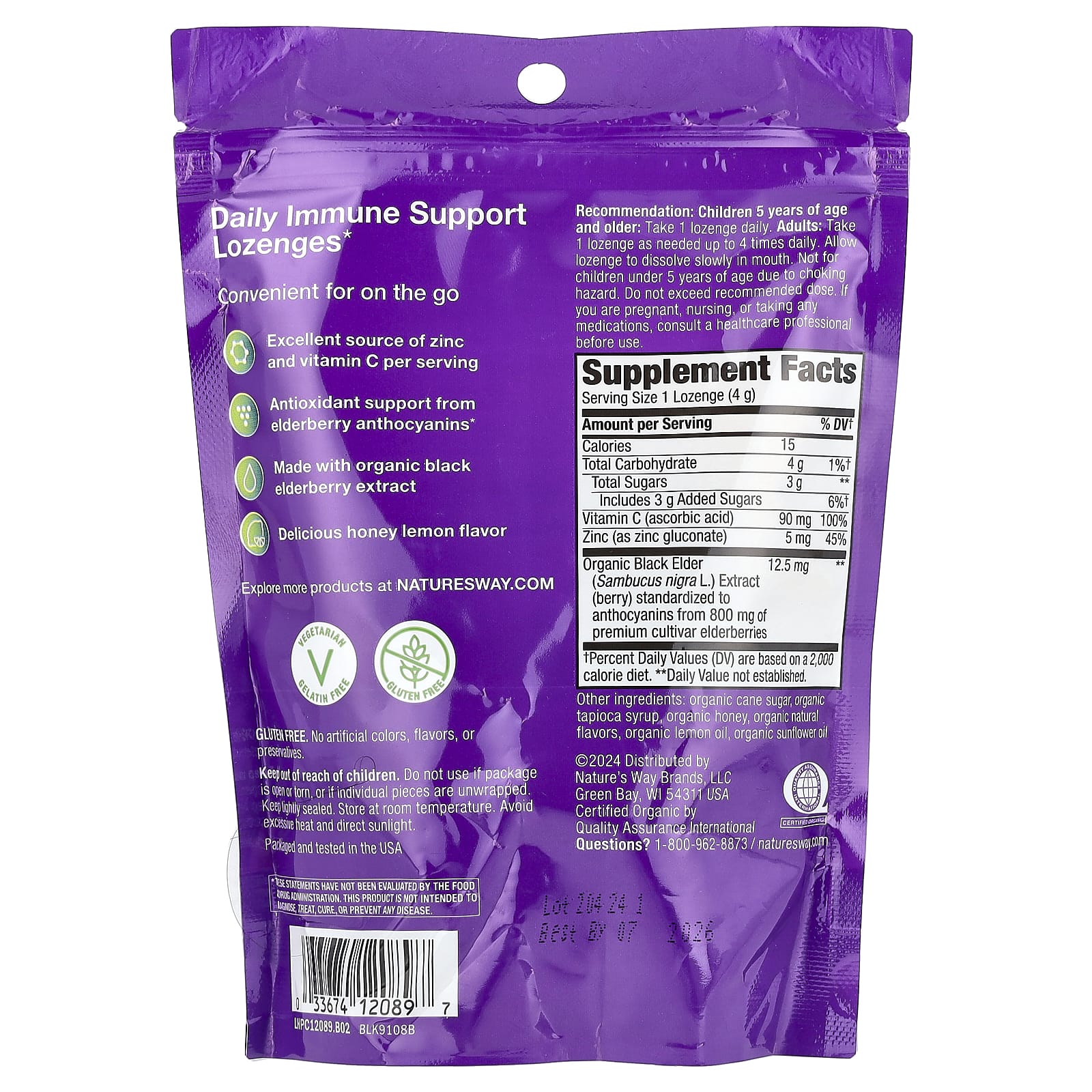 Nature's Way, Sambucus, пастилки для иммунитета, бузина, цинк и витамин C, мед и лимон, 24 пастилки