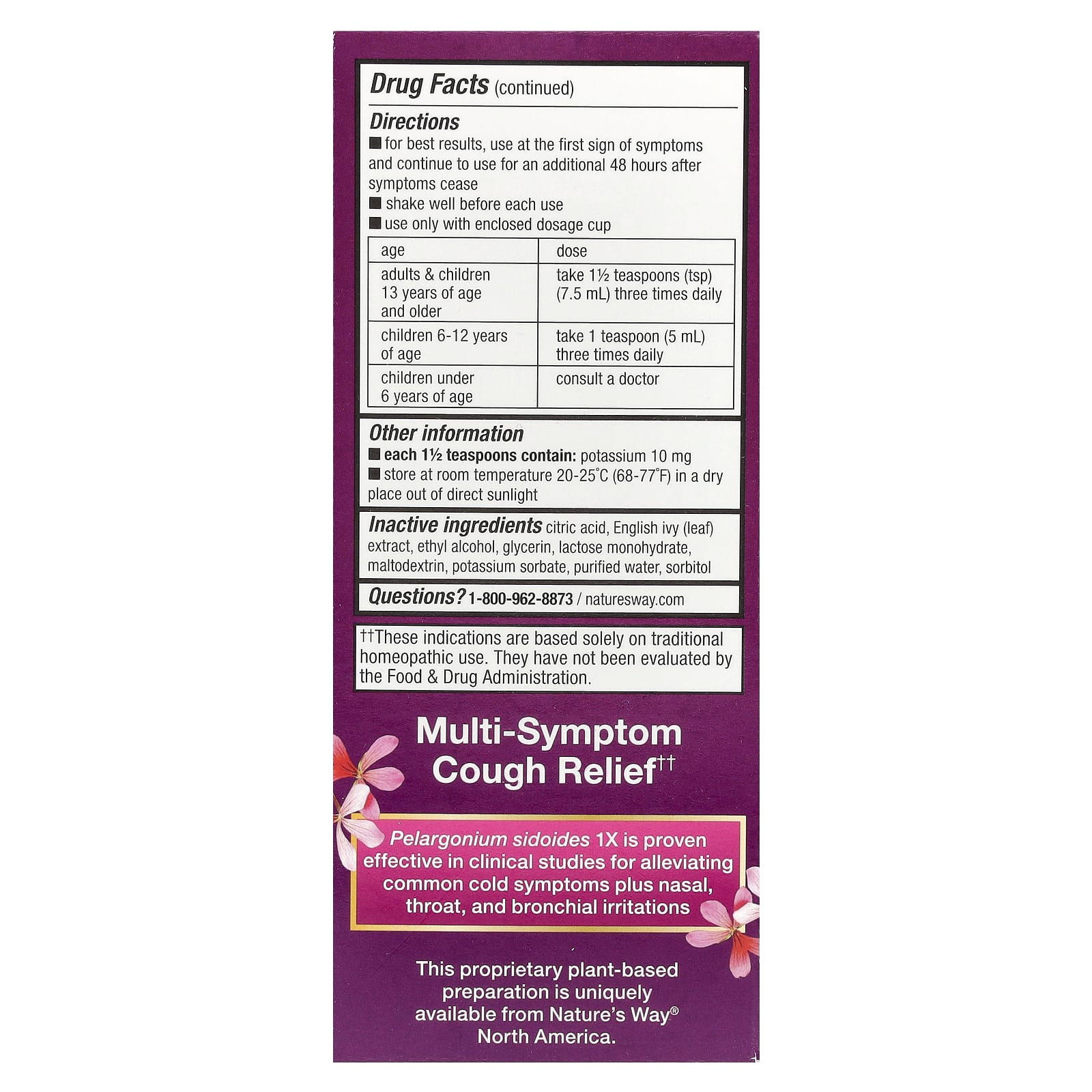 - Многофункциональное средство для облегчения кашля с клинически подтвержденной эффективностью пеларгонии сидовидной (Pelargonium sidoides) 1X на основе английского плюща