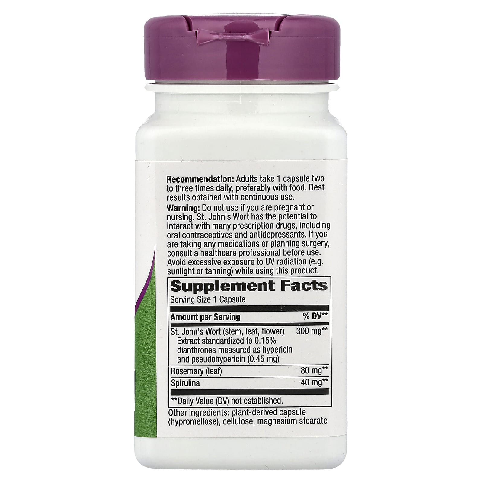 Не следует принимать во время беременности и кормления грудью. Зверобой может взаимодействовать со многими рецептурными препаратами, включая оральные противозачаточные средства и антидепрессанты. Если вы принимаете какие-либо лекарства или планируете хирургическую операцию, перед применением проконсультируйтесь с врачом. Избегайте чрезмерного воздействия УФ-излучения (например, солнечного света или загара).