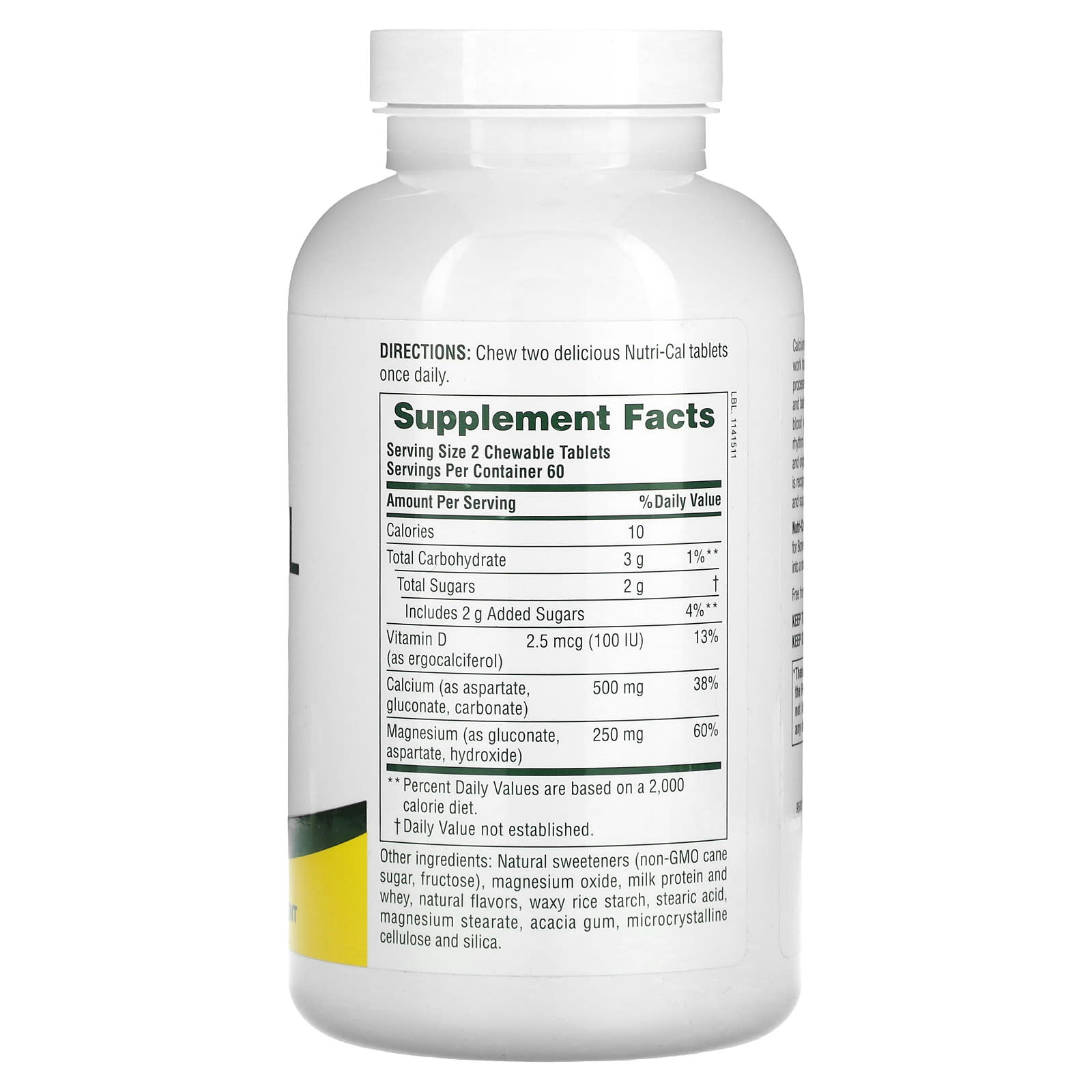 Жуйте две вкусные таблетки Nutri-Cal один раз в день.