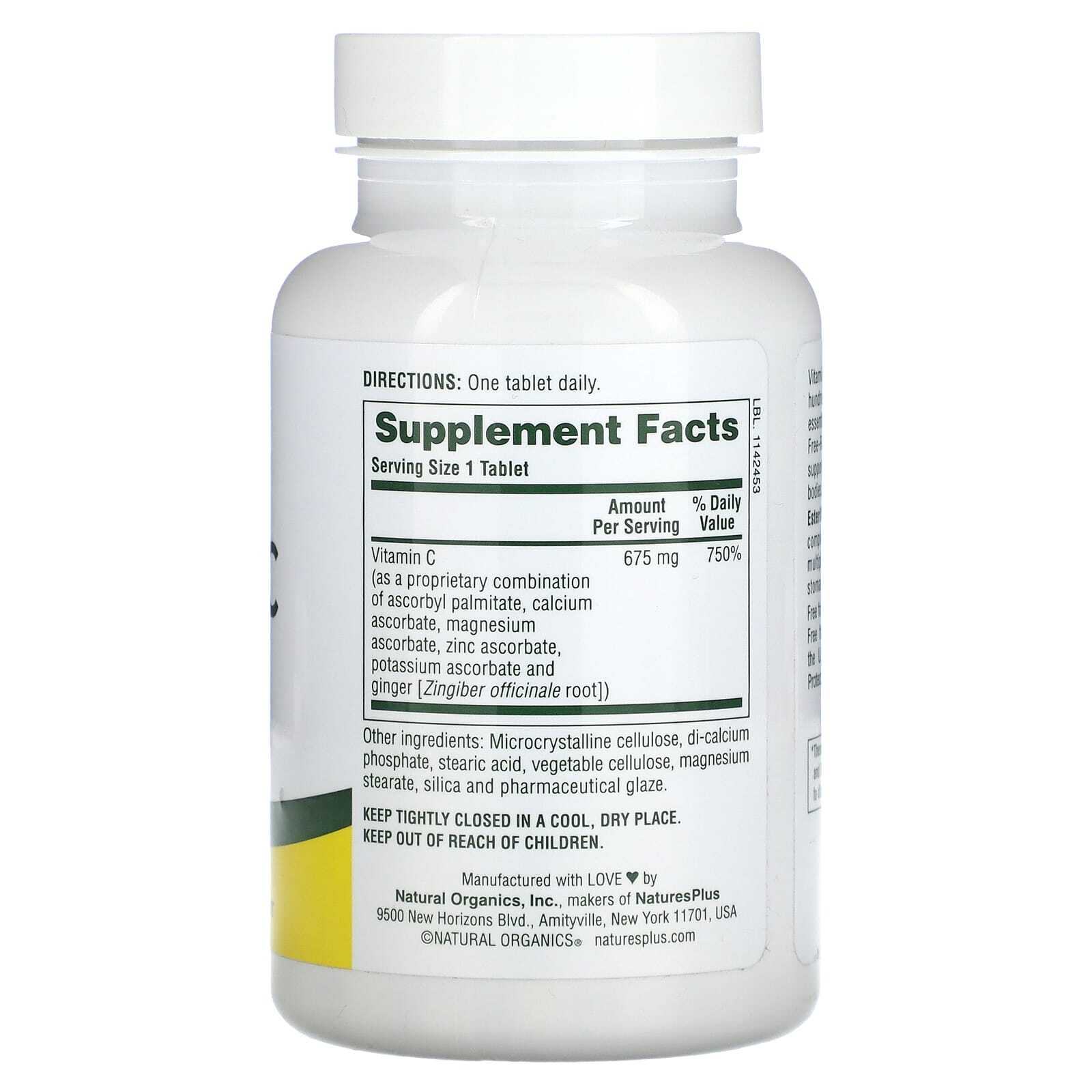 Витамин C (в виде запатентованной комбинации аскорбилпальмитата, аскорбата кальция, аскорбата магния, аскорбата цинка, аскорбата калия и имбиря [корень Zingiber officinale]) | 675 мг | 750% |