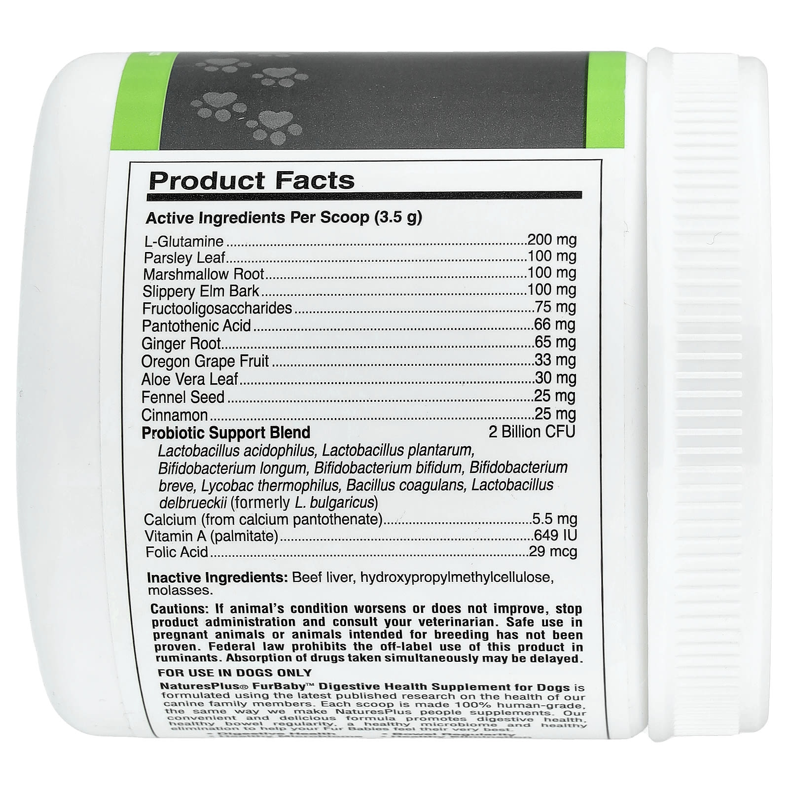 Добавка для здоровья пищеварительной системы для собак Furry™ от NaturesPlus® разработана на основе результатов последних опубликованных исследований здоровья нашей семьи собак. Каждая мерная ложка на 100% подходит для людей, так же как мы производим добавки для людей от NaturesPlus. Наша удобная и вкусная формула способствует здоровью пищеварительной системы, регулярности стула, здоровому микробиому и здоровому очищению организма, чтобы помочь вашим пушистым малышам чувствовать себя наилучшим образом.