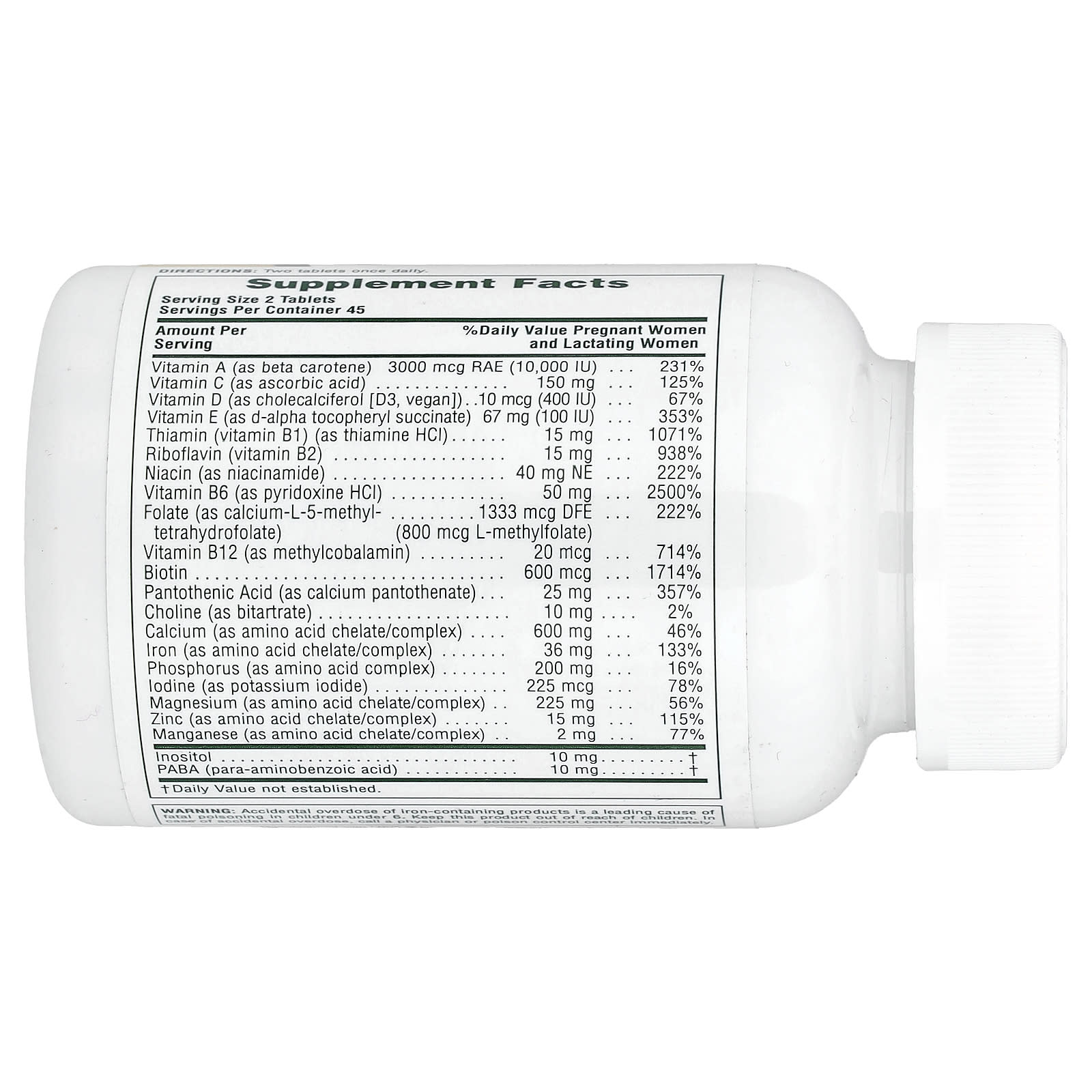 | Фолат (в виде кальций-L-5-метилтетрагидрофолата) | 1333 мкг DFE (800 мкг L-метилфолата | 222% |
