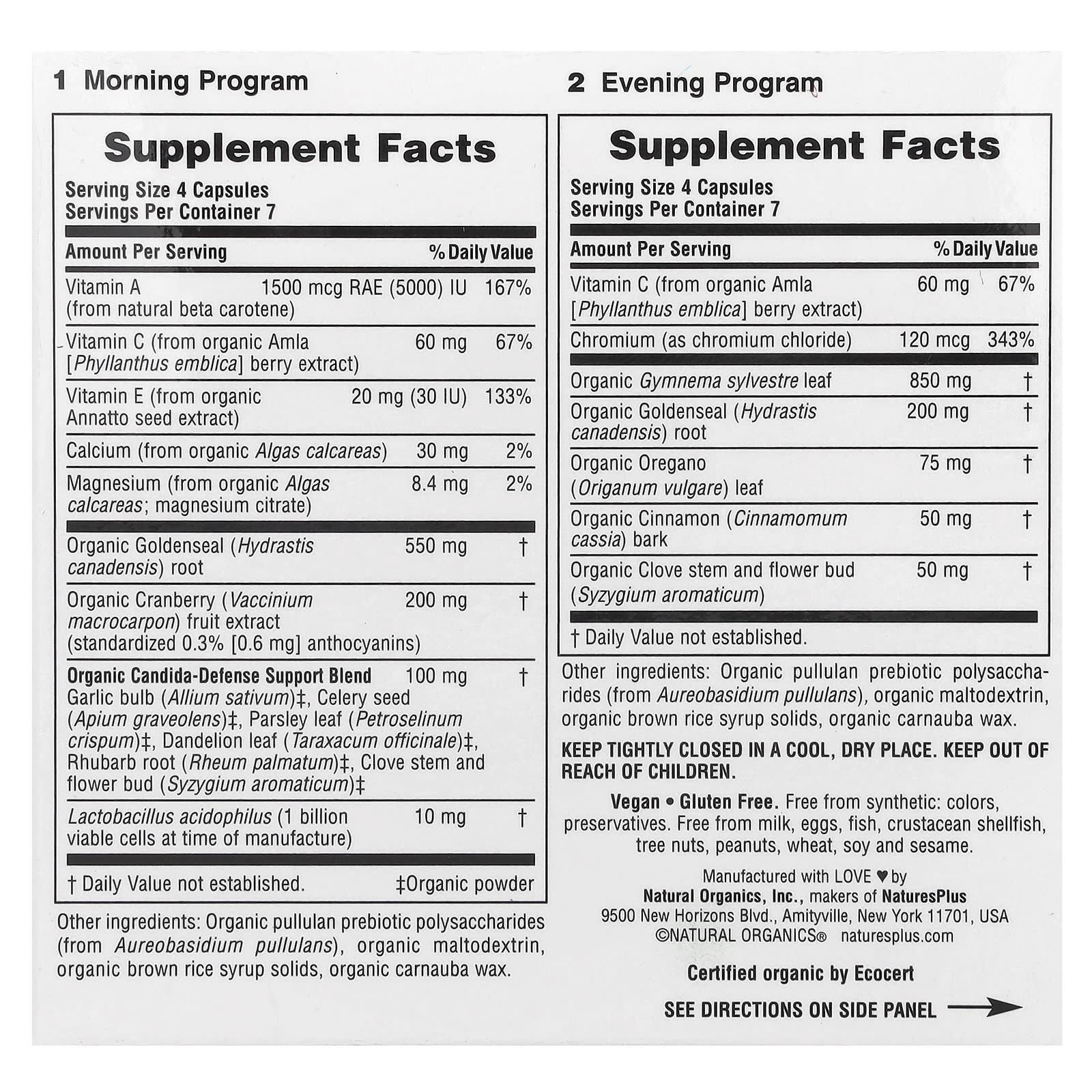 NaturesPlus Candida Cleanse ™ - это средство для очищения всего организма от кандидоза, объединяющее мощные пробиотики, органические травы, витамины и минералы из цельных пищевых продуктов для системного действия. Эта 7-дневная программа состоит из утренних и вечерних формул в удобных капсулах. Candida Cleanse поддерживает здоровье иммунной системы, улучшает антиоксидантную защиту, помогает сбалансировать микрофлору и помогает устранить состояния (например, чрезмерное количество сахара), способствующие росту кандиды. Candida Cleanse специально помогает очистить кишечник, мочевыводящие пути и репродуктивную систему для максимальной эффективности.