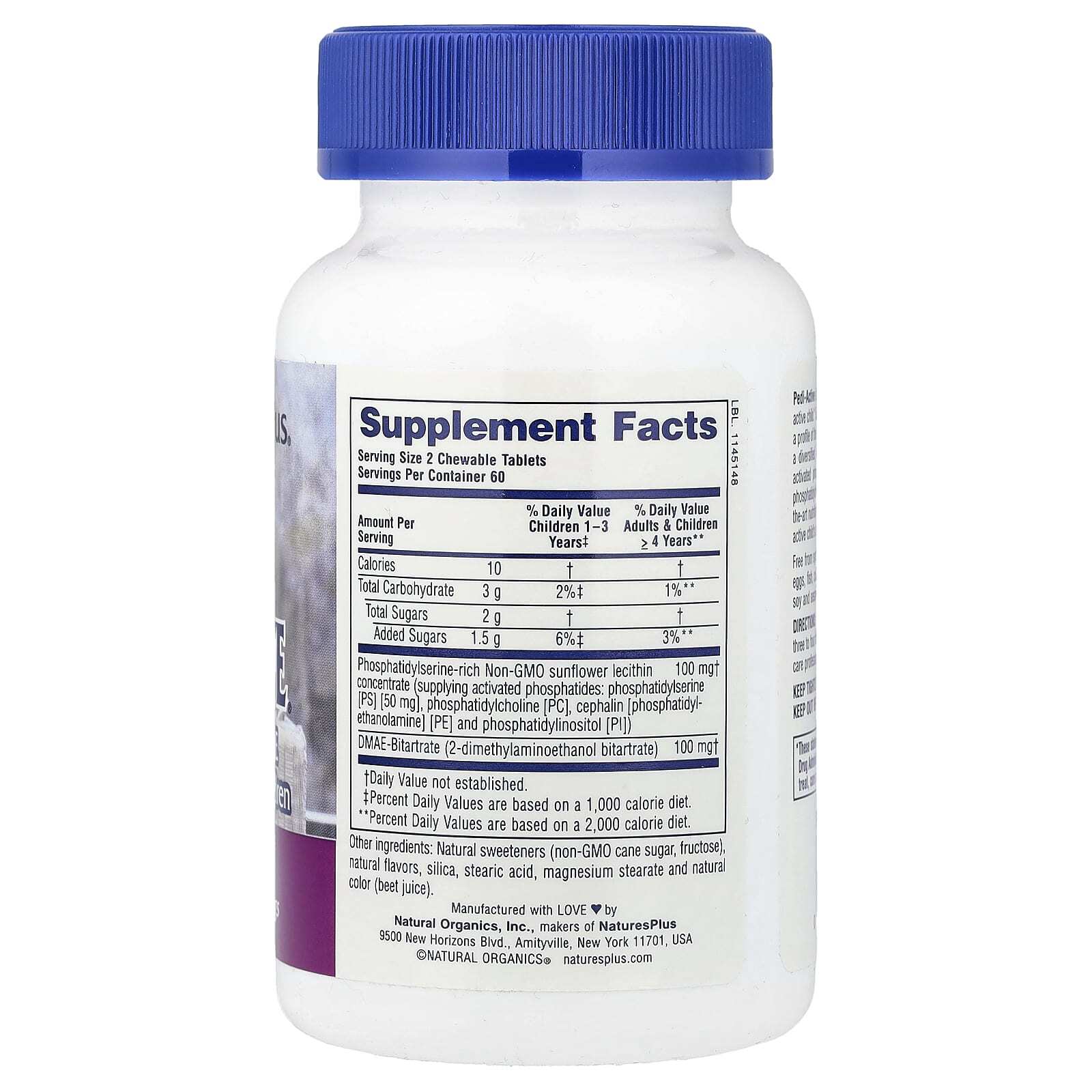 Pedi-Active — это точно выверенная формула, разработанная для активного ребенка. Каждая невероятно вкусная жевательная таблетка содержит набор самых передовых питательных веществ для нервной системы. Каждая таблетка Pedi-Active, содержащая разностороннюю специализированную комбинацию ДМАЭ и активированных фосфатидов, включая фосфатидилсерин и фосфатидилхолин, является ультрасовременной пищевой добавкой, которая естественным образом подходит для нежной системы активного ребенка.