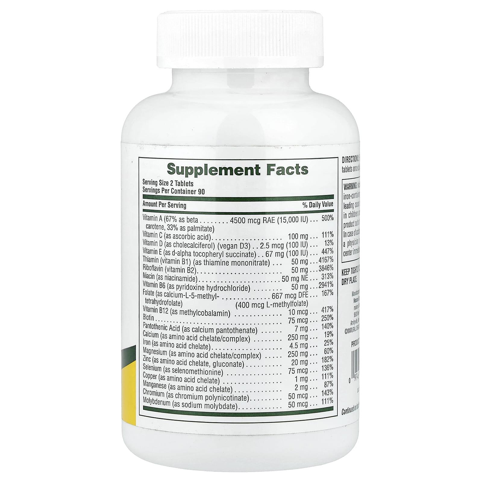 Фолат (в виде кальций-L-5-метилтетрагидрофолата)667 мкг DFE (400 мкг L-метилфолата)167%
