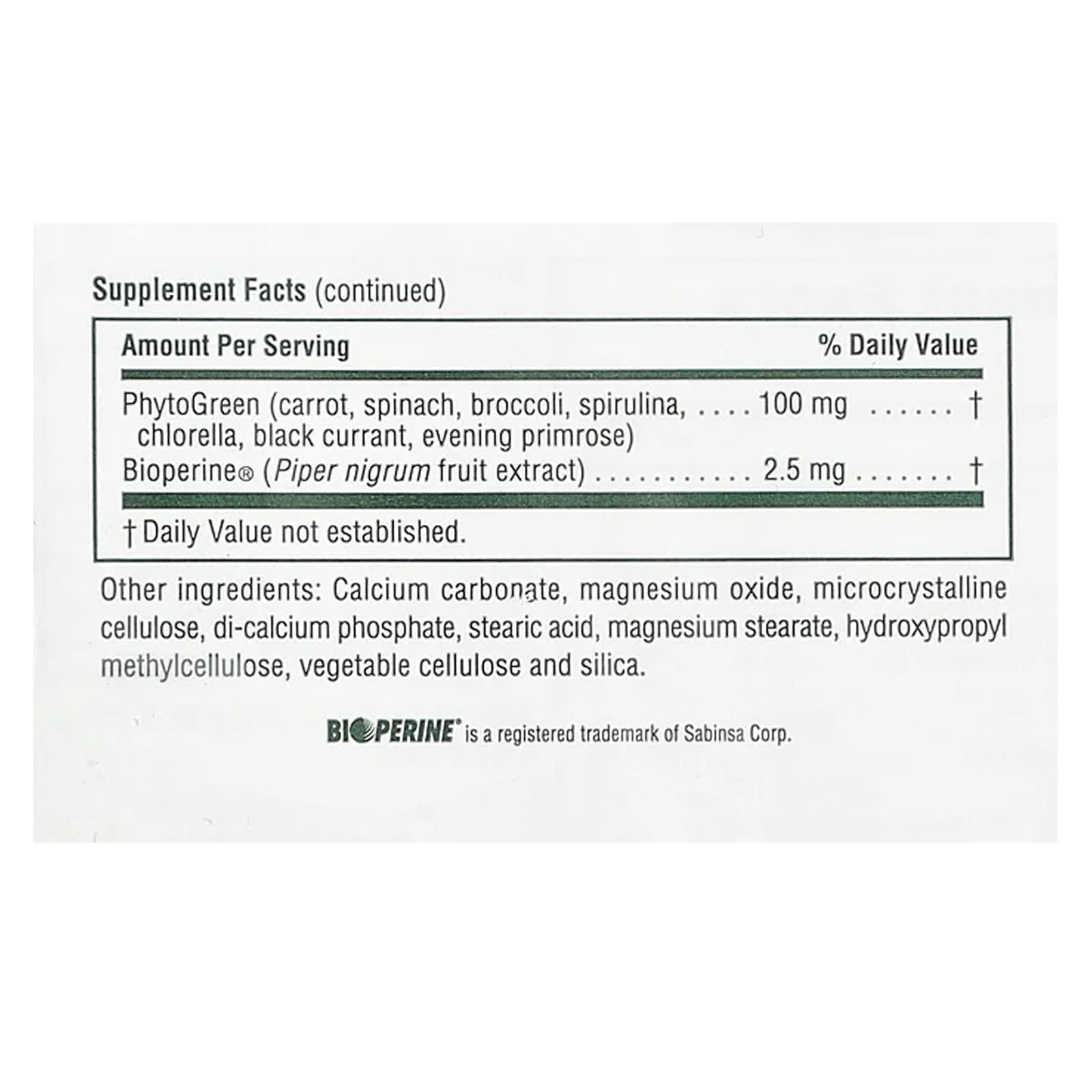 PhytoGreen (морковь, шпинат, брокколи, спирулина, хлорелла, черная смородина, примула вечерняя)100 мг