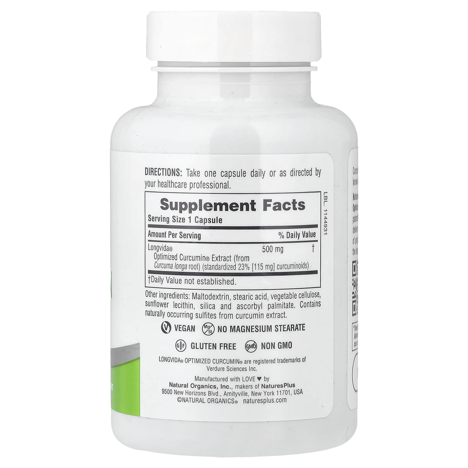 Curcumin 500 от NaturesPlus® содержит оптимизированный Curcumin® Longvida® и обеспечивает превосходное усвоение. Его запатентованная технология получения твердых липидных частиц куркумина (SLCP™) обеспечивает повышенную антиоксидантную активность за счет увеличения количества полифенолов, а также ферментативных антиоксидантов, которые вырабатываются организмом естественным образом.