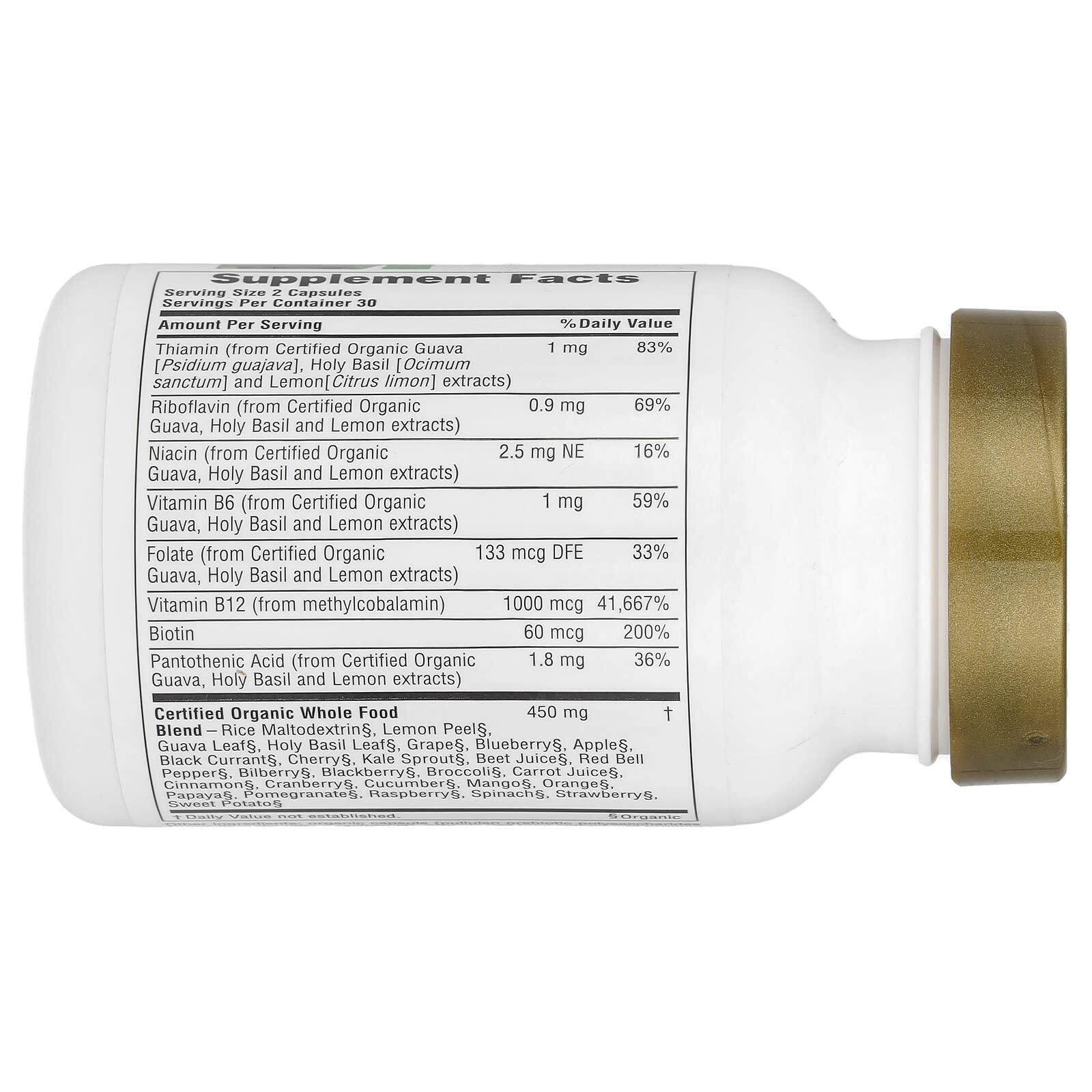Фолат (из сертифицированного органического Экстракты гуавы, базилика и лимона) | 133 мкг DFE | 33% |