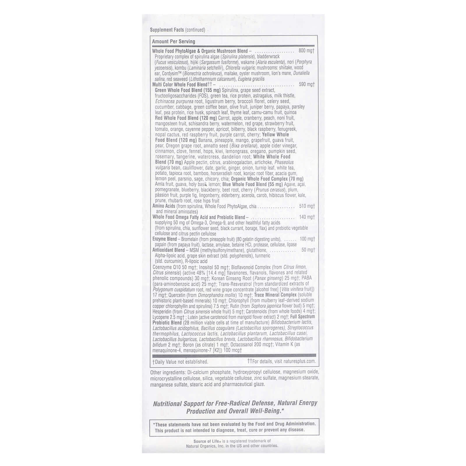Зеленая цельная пищевая смесь (155 мг) Спирулина, экстракт виноградных косточек, фруктоолигосахариды (ФОС), зеленый чай, рисовый белок, астрагал, расторопша, корень эхинацеи пурпурной, ягоды лигустра, цветки брокколи, семена сельдерея, огурец, капуста, зеленые кофейные зерна , плоды оливы, ягоды можжевельника, папайя, листья петрушки, гороховый протеин, рисовая шелуха, листья шпината, листья тимьяна, плоды каму-каму, киноа Красная цельная пищевая смесь (120 мг) Морковь, яблоко, клюква, персик, плоды нони, плоды мангустана, ягоды лимонника, арбуз, красный виноград, плоды клубники, томат, апельсин, кайенский перец, абрикос, черника, черная малина, пажитник, нопал кактус, красная малина, фиолетовая морковь, вишня Желтая цельная пищевая смесь (120 мг) Банан, ананас, манго, грейпфрут, плоды гуавы, груша, корень орегонского винограда, семена аннато (Bixa orellana), яблочный уксус, корица, гвоздика, фенхель, хмель, киви, лемонграсс, орегано, семена тыквы, розмарин, мандарин, кресс-салат, корень одуванчика Белая цельная пищевая смесь (70 мг) Яблочный пектин, цитрусовые, арабиногалактан, артишок, фасоль Phaseolus vulgaris, цветная капуста, финики, чеснок, имбирь, лук, листья репы, белый чай, картофель, корень тапиоки, бамбук, корень хрена, клетчатка корня конжака , камедь акации, цедра лимона, пастернак, шалфей, цикорий, чиа Органический комплекс из цельных продуктов (70 мг) плоды амлы, гуава, базилик священный, лимон Синяя цельная пищевая смесь (55 мг) Агава, асаи, гранат, голубика, ежевика, корень свеклы, вишня (Prunus cerasus), слива, маракуйя, фиолетовый инжир, брусника, бузина, ацерола, рожковое дерево, цветок гибискуса, капуста, чернослив, корень ревеня, плоды шиповника | ||