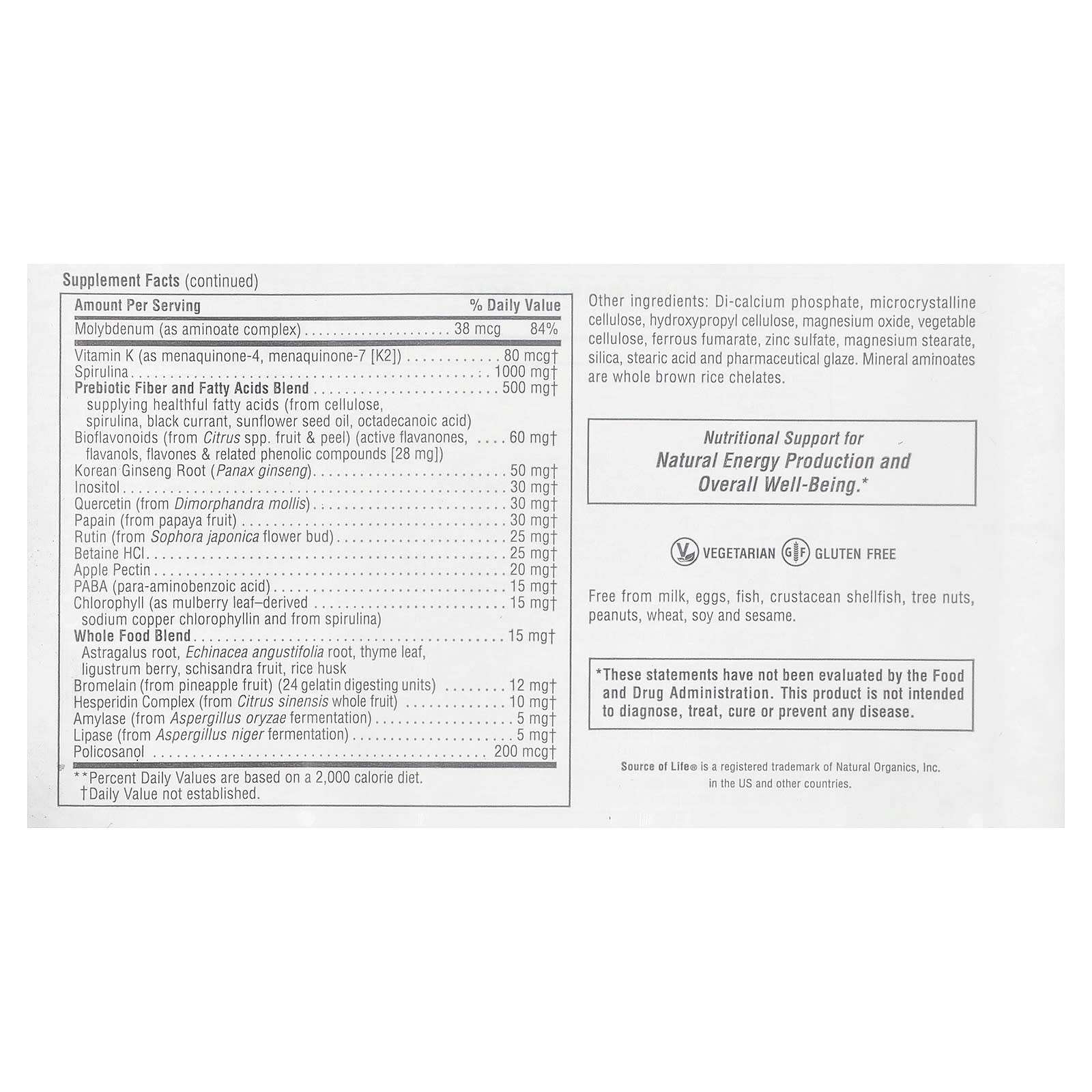 Дикальций фосфат, микрокристаллическая целлюлоза, гидроксипропилцеллюлоза, оксид магния, растительная целлюлоза, фумарат железа, сульфат цинка, стеарат магния, диоксид кремния, стеариновая кислота и фармацевтическая глазурь.