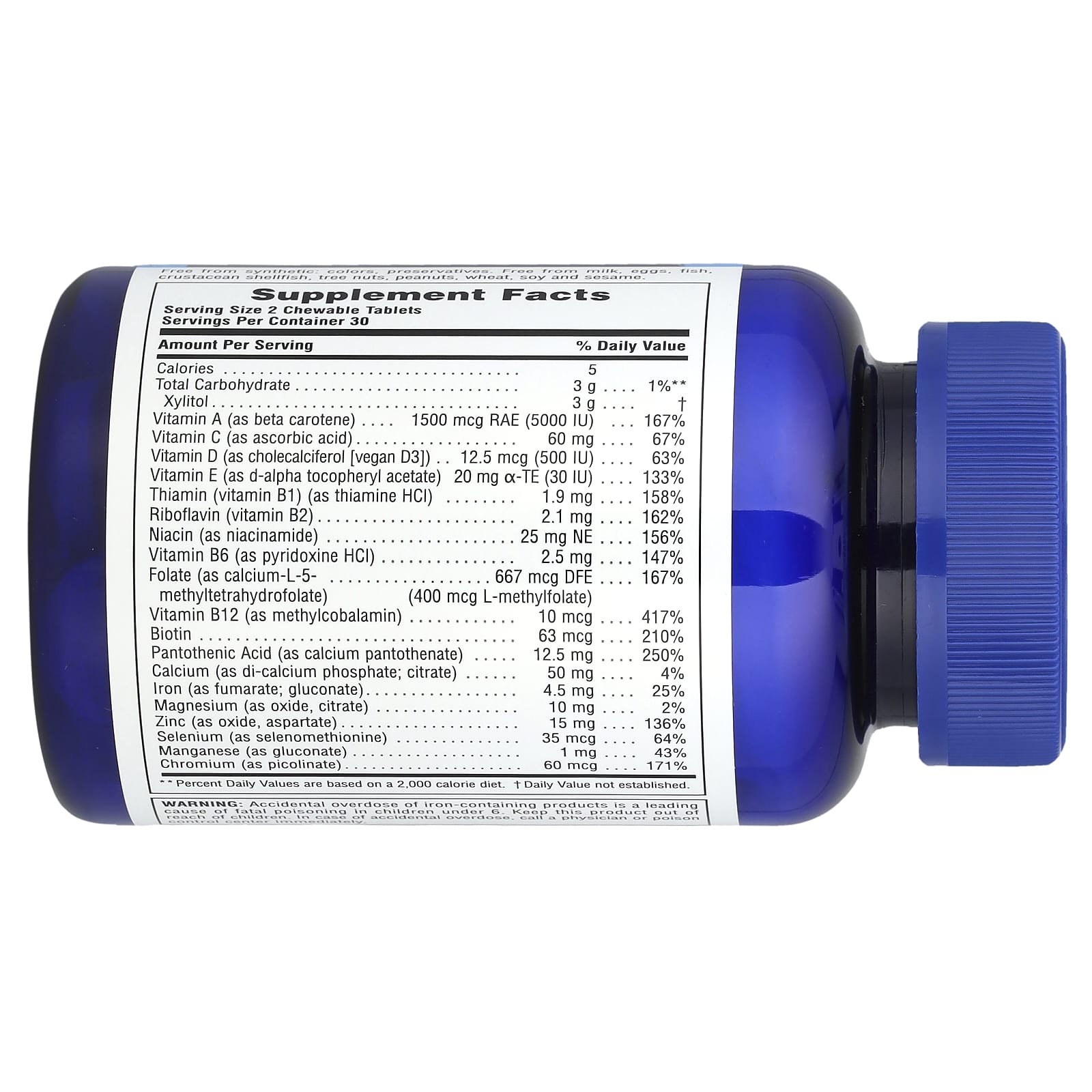 | Фолат (в виде кальция L-5-метилтетрагидрофолата) | 667 мкг пищевого фолатного эквивалента (400 мкг L-метилфолата) | 167% |