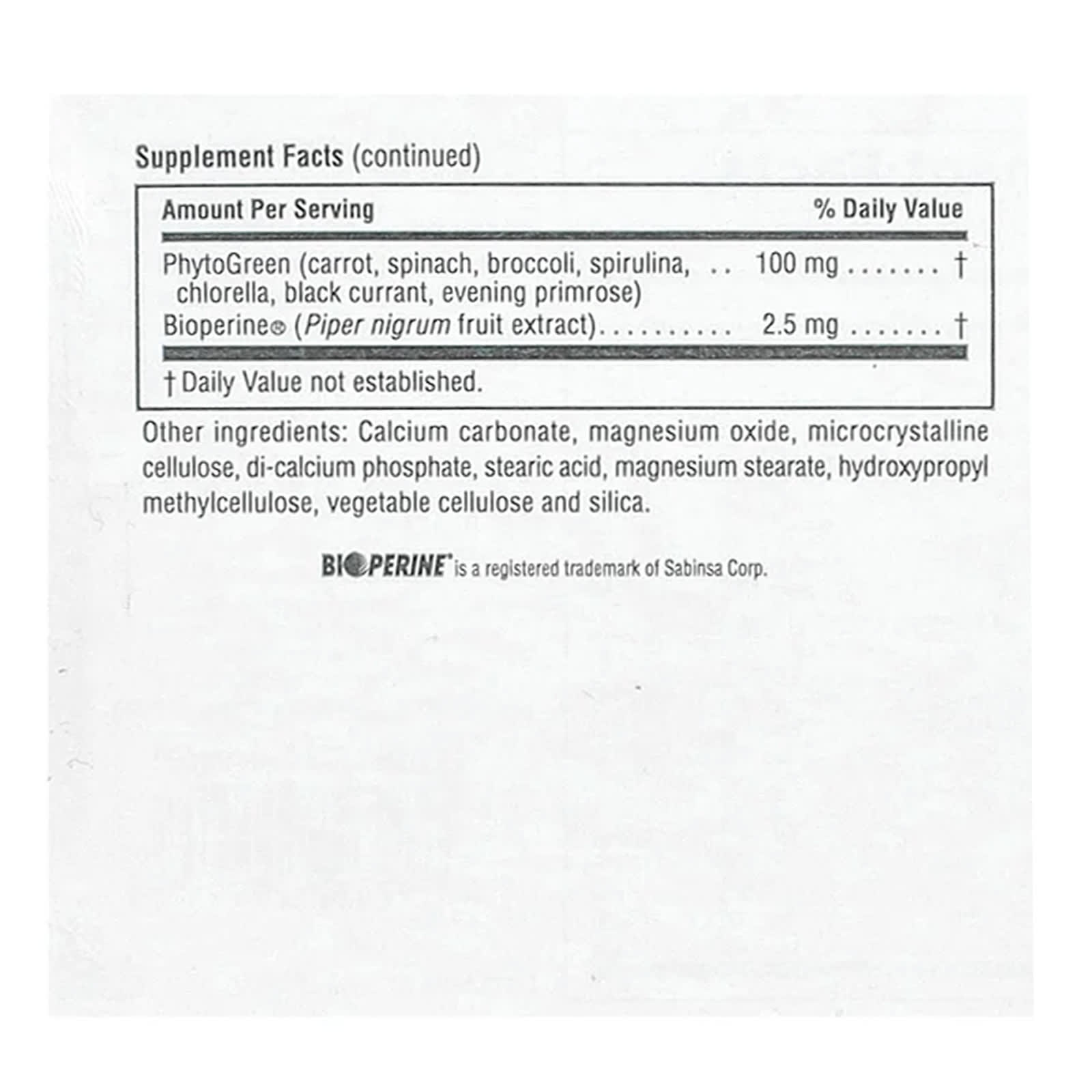 | PhytoGreen (морковь, шпинат, брокколи, спирулина, хлорелла, черная смородина, примула вечерняя) | 100 мг | † |