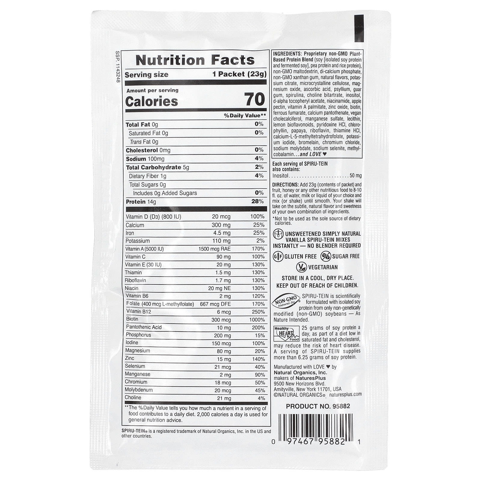 Каждая порция Spiru-Tein также содержит 50 мг инозитола