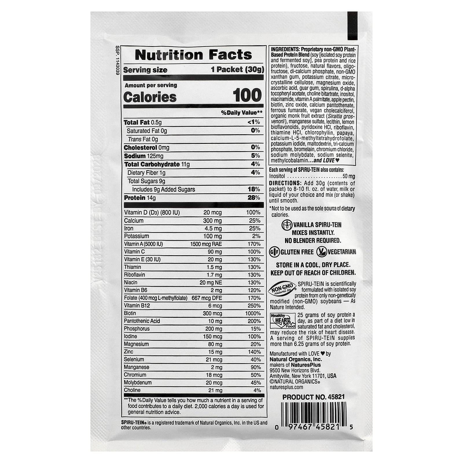 Каждая порция Spiru-Tein также содержит 50 мг инозитола.