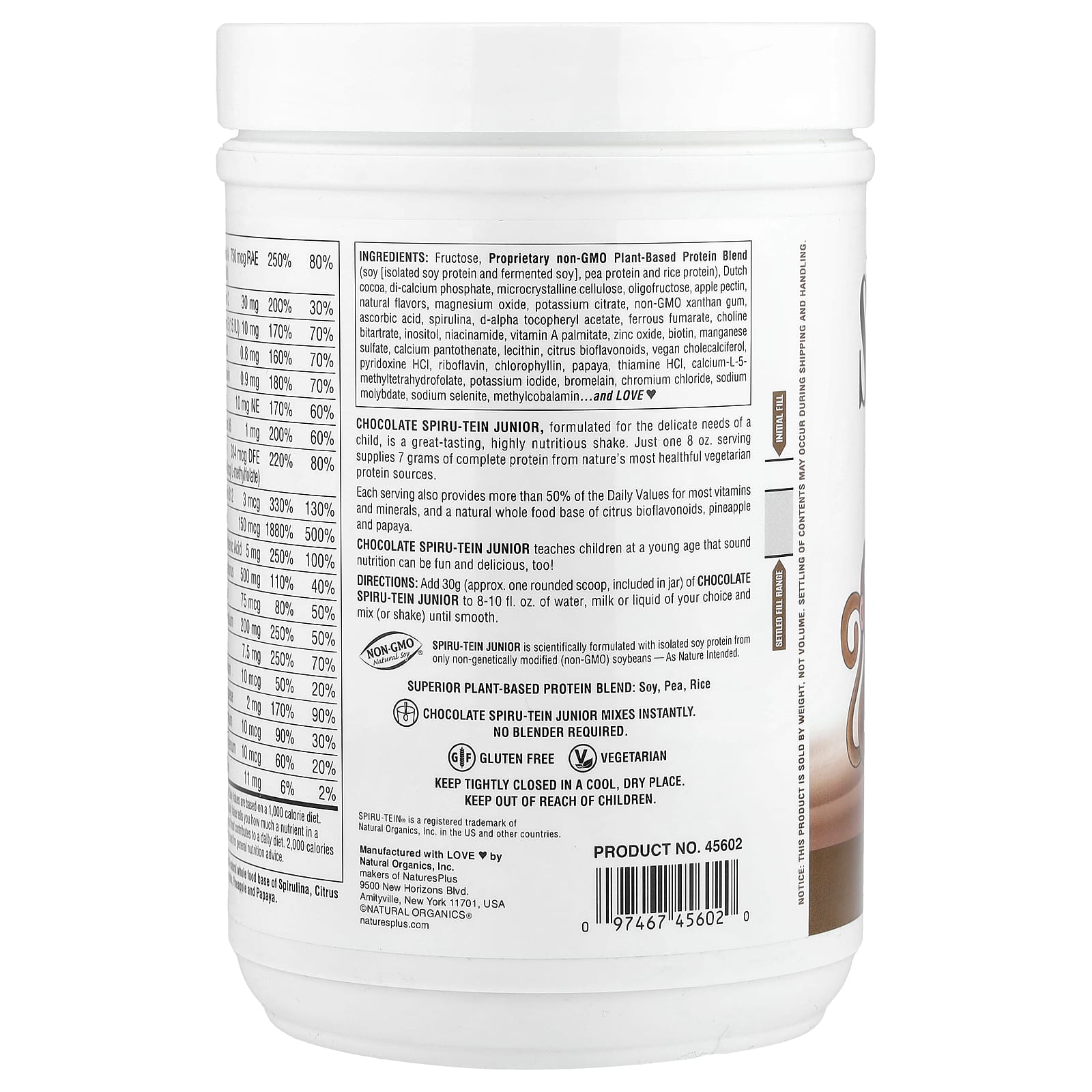 Шоколадный коктейль Spiru-Tein Junior, разработанный для изысканных потребностей ребенка, имеет прекрасный вкус и очень питательный коктейль. Всего одна порция объемом 240 мл (8 унций) содержит 7 г полноценного белка из самых полезных растительных источников белка.