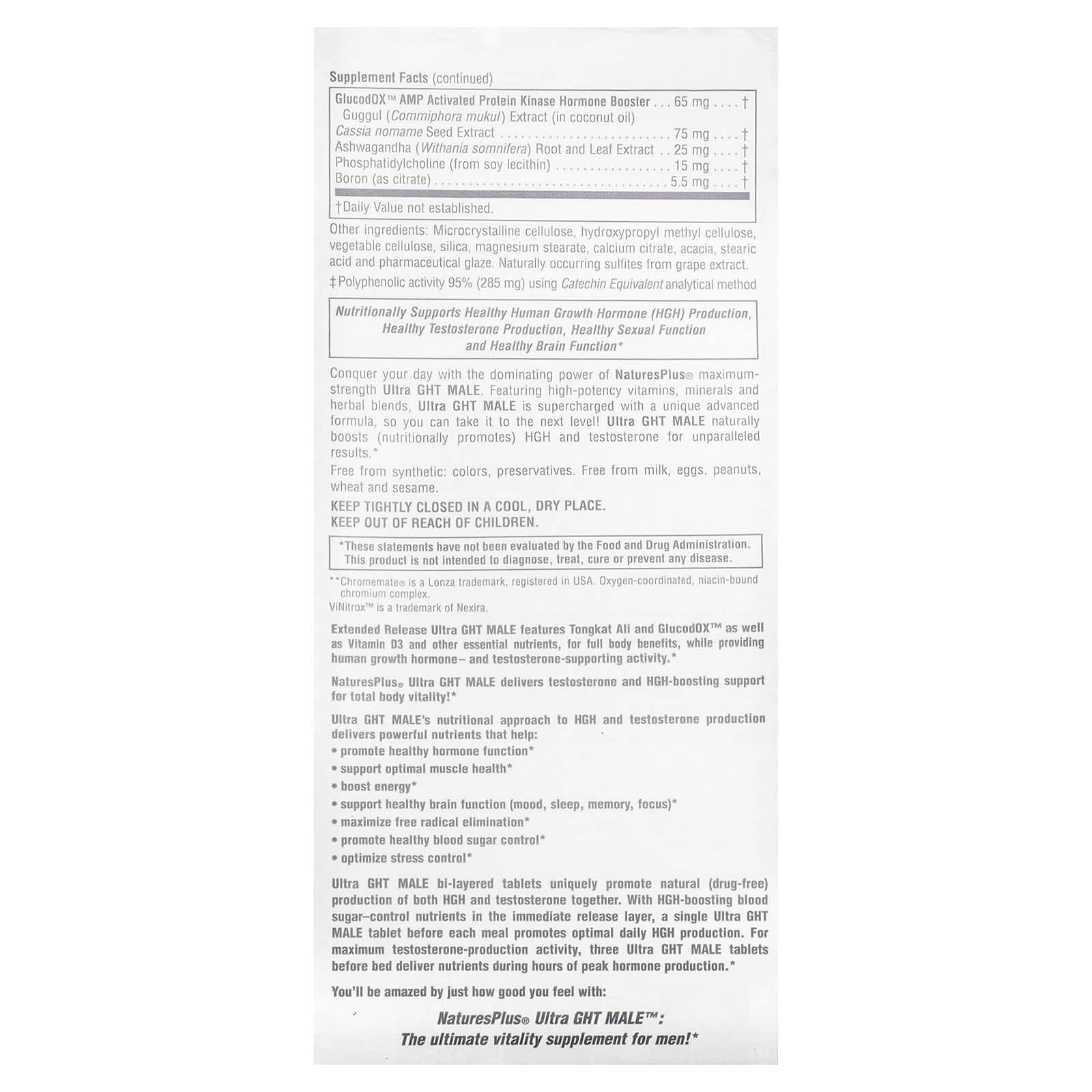 Покорите свой день с помощью ведущей силы Ultra GHT MALE максимальной силы действия от NaturesPlus®. Добавка Ultra GHT MALE содержит высокоэффективные витамины, минералы и травяные смеси и уникальную усовершенствованную формулу, поэтому вы можете вывести ее на новый уровень! Ultra GHT MALE естественным образом повышает (питательно способствует) гормона роста и тестостерона для достижения беспрецедентных результатов.