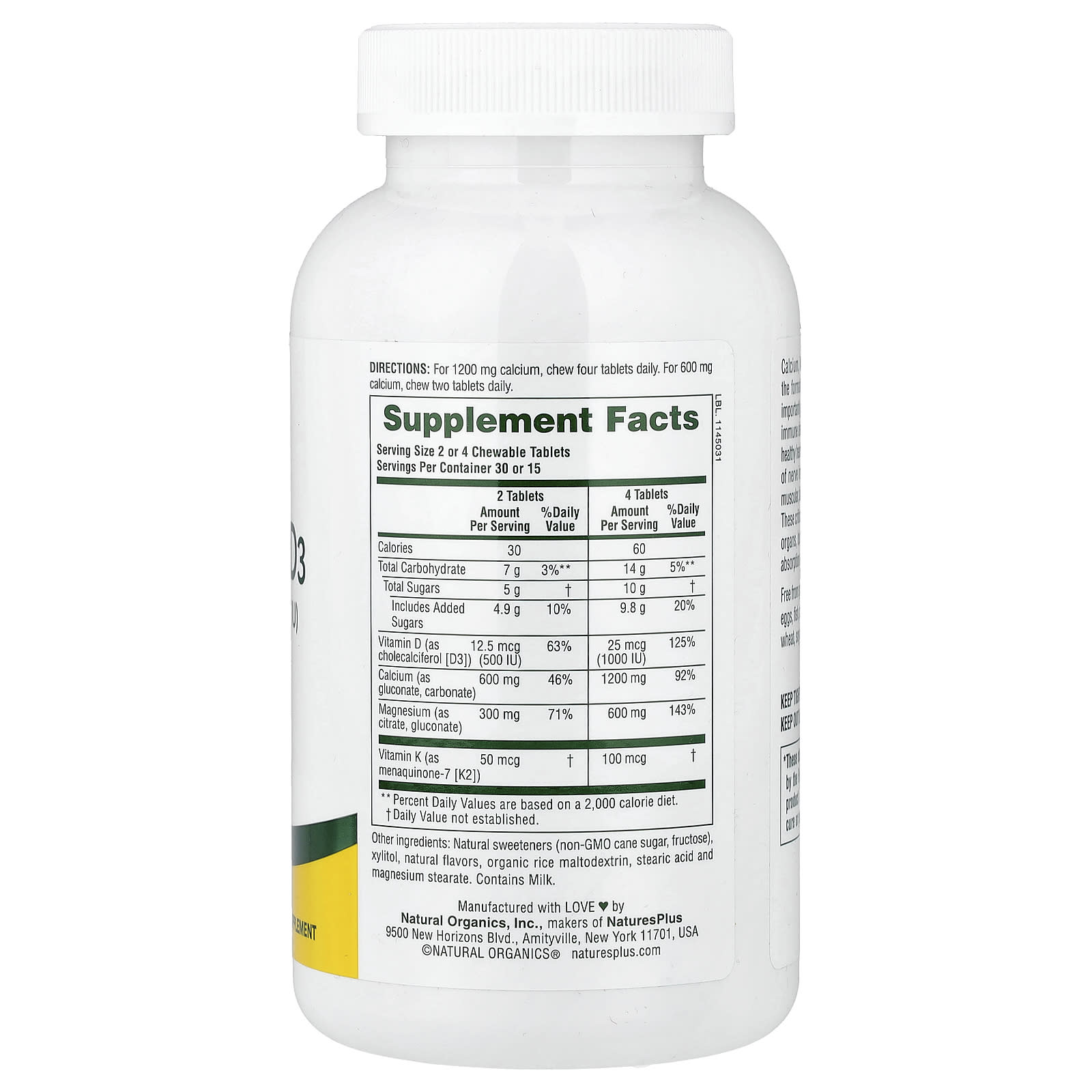 Жевательные таблетки NaturesPlus с кальцием, магнием и витамином D3 с восхитительным вкусом ванили обеспечивает эффективную комбинацию кальция и магния, обогащенную 1000 МЕ витамина D3 и 100 мкг витамина K2 (в виде менахинона-7) для максимального потребления энергии и здоровья костей.