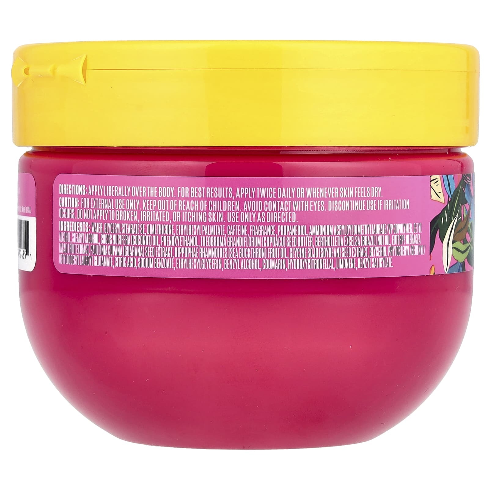 Вода, глицерил стеарат эмульгирующий, диметикон, этилгексил пальмитат, кофеин, отдушка, пропандиол, аммоний акрилоилдиметилтаурат/ВП сополимер, цетиловый спирт, стеариловый спирт, кокосовое масло (Cocos nucifera), феноксиэтанол, масло семян купуасу (theobroma grandiflorum), масло из бразильского ореха bertholletia excelsa, экстракт ягод асаи (Euterpe oleracea), экстракт семян гуараны (Paullinia cupana), масло плодов облепихи (Hippophae rhamnoides), экстракт семян сои (глицин сои), глицерин, фитостерил/бегенил/октилдодецил лауроил глутамат, лимонная кислота, бензоат натрия, этилгексилглицерин, бензиловый спирт, кумарин, гидроксицитронеллаль, лимонена, бензилсалицилат.