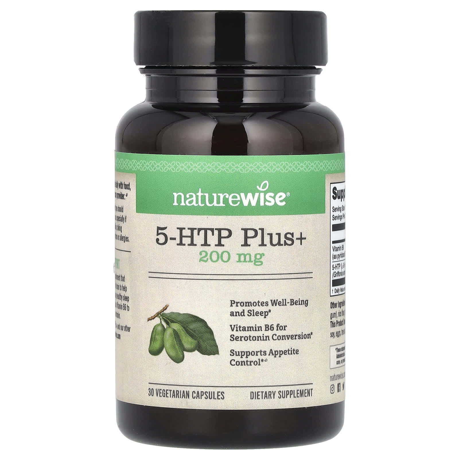 NatureWise, 5-HTP Plus+, 200 мг, 30 вегетарианских капсул
