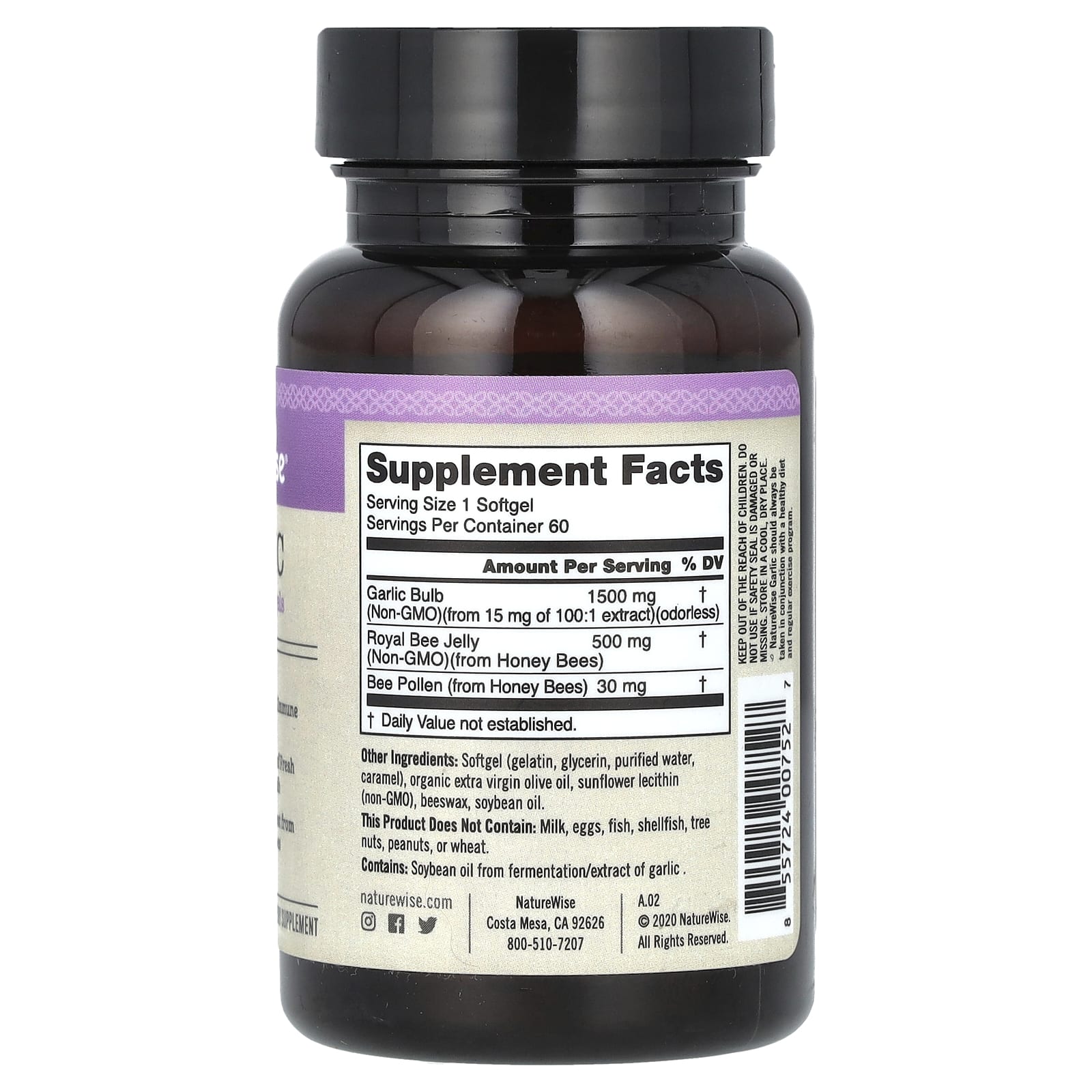 На протяжении веков чеснок использовался в качестве домашнего средства и для поддержки здоровья сердечно-сосудистой системы. Чеснок обладает мощными антиоксидантными свойствами, которые помогают снизить уровень холестерина и поддерживать нормальное артериальное давление. Чеснок от NatureWise не содержит ГМО и не имеет запаха. Кроме того, компания NatureWise разработала совместное средство с маточным пчелиным молочком и пчелиной пыльцой, синергетическими суперфудами, которые содержат витамины, микроэлементы и другие биологически активные соединения для повышения биодоступности и эффективности чеснока.