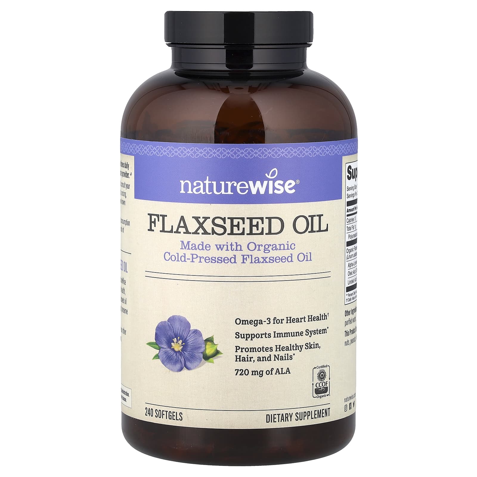 Льняное масло NatureWise — это натуральный источник альфа-линолевой кислоты (АЛК), которое поддерживает здоровье сердечно-сосудистой системы и иммунитета, а также здоровье кожи, волос и ногтей. Наше льняное масло холодного отжима — это сертифицированный органический продукт, который защищает и сохраняет полезные свойства семян льна.
