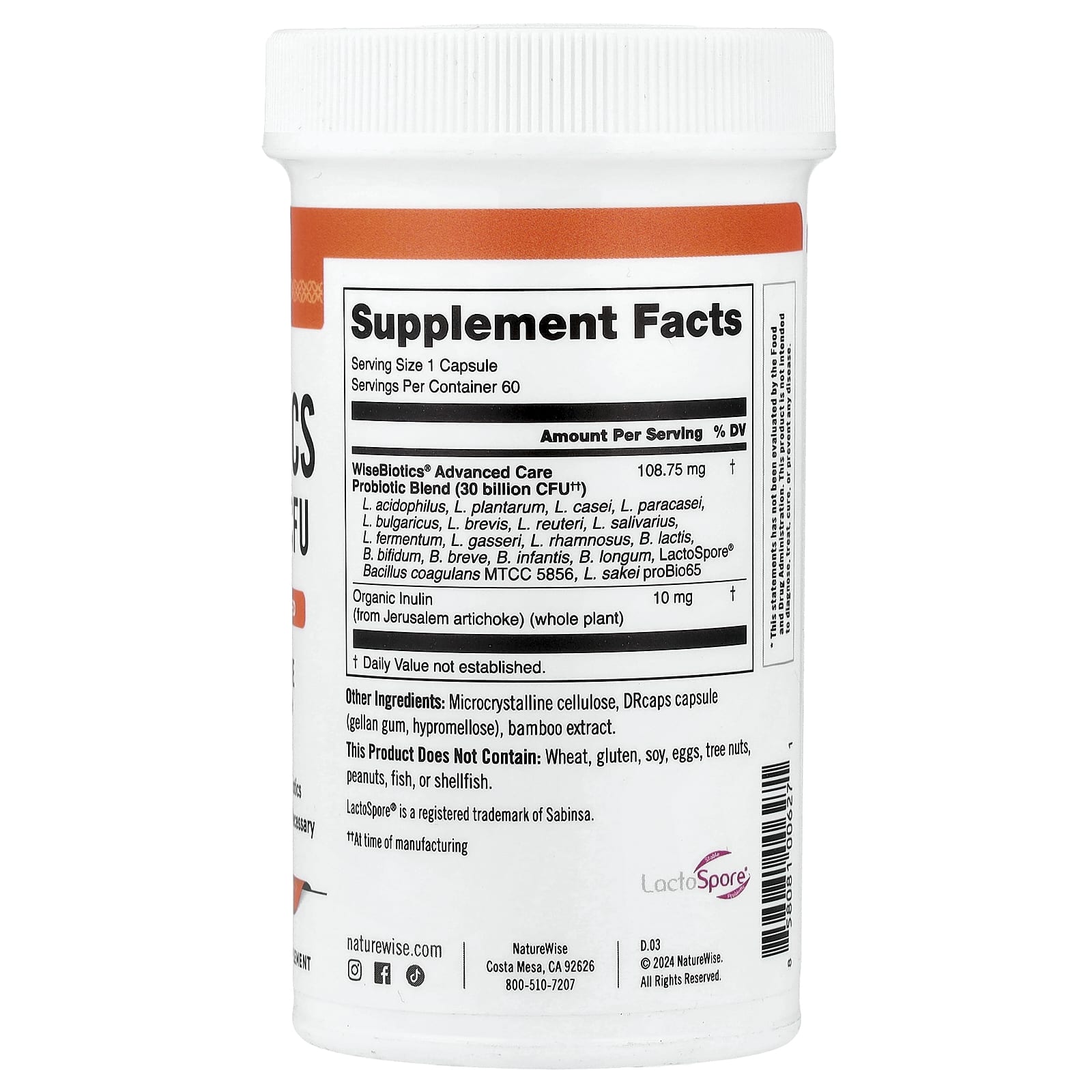 Пробиотики NatureWise, 30 миллиардов КОЕ, всегда следует принимать в сочетании со здоровым рационом и программой регулярных физических нагрузок.