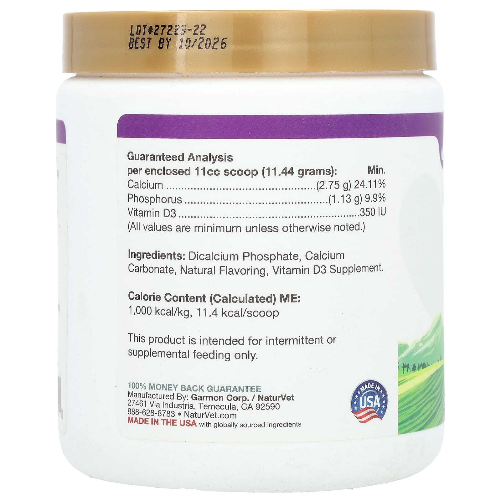 Рассчитанная метаболическая энергия (в калориях): 1000 ккал/кг, 11,4 ккал в мерной ложке |