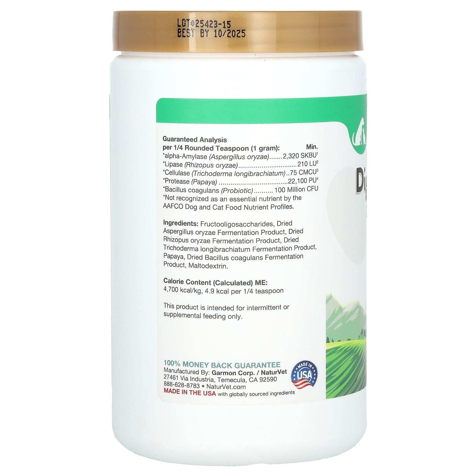 Разработано ветеринарами для собак и кошек старше 6 недель. Источник альфа-амилазы (участвует в гидролизе крахмала), протеазы (участвует в гидролизе белка, целлюлазы (участвует в расщеплении целлюлозы) липазы (участвует в гидролизе триглицеридов) Содержит источник живых (жизнеспособных) микроорганизмов природного происхождения.