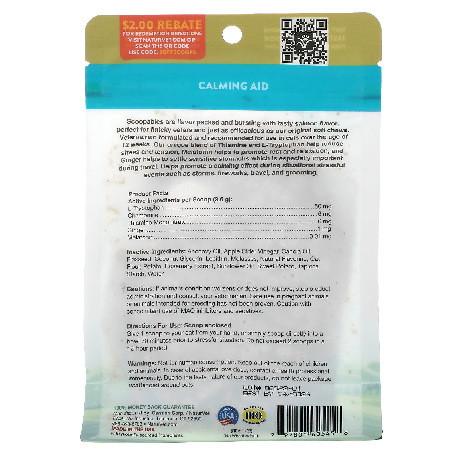 Scoopables имеет насыщенный вкус и вкус лосося, идеально подходит для привередливых едоков и так же эффективен, как и наши оригинальные мягкие жевательные таблетки. Разработано ветеринаром и рекомендовано к применению для кошек старше 12 недель. Наша уникальная смесь тиамина и L-триптофана помогает снизить стресс и напряжение, мелатонин способствует отдыху и расслаблению, а имбирь помогает успокоить чувствительный желудок, что особенно важно во время путешествий. Помогает оказывать успокаивающее действие во время стрессовых ситуаций, таких как шторм, фейерверк, путешествия и уход.
