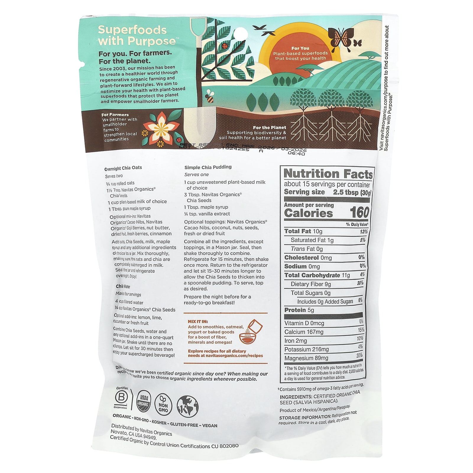 Семена чиа от Navitas Organics — это ваш шанс получить максимальное количество омега-3! Вы можете добавлять эти крошечные семена, богатые белком и клетчаткой, в овсянку, смузи, йогурт и т. п. для получения заряда питательных веществ.
