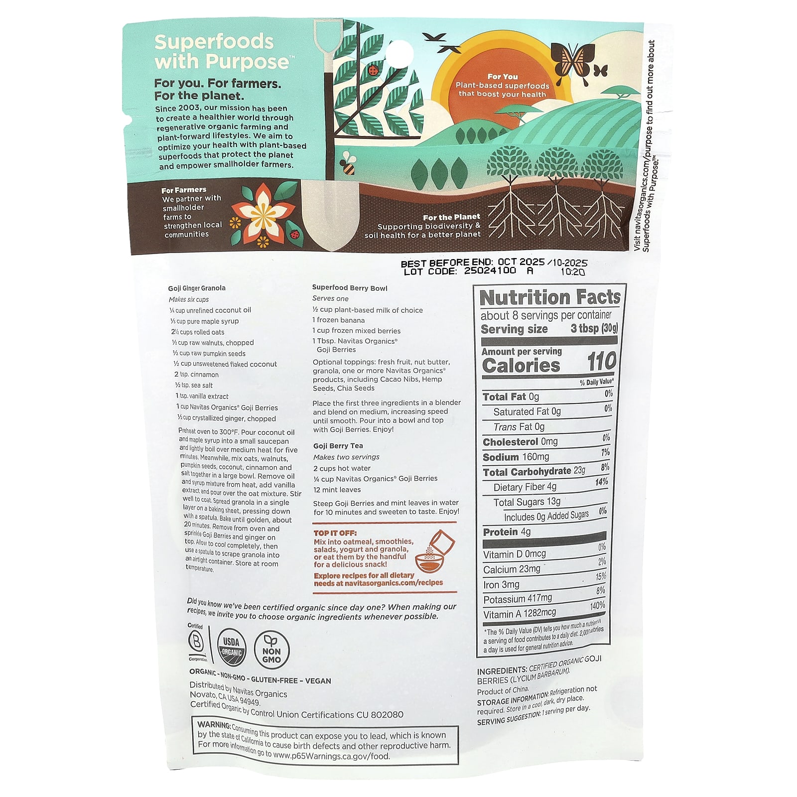 С 2003 года наша миссия — сделать мир более здоровым с помощью регенеративного органического сельского хозяйства и образа жизни с использованием растений. Мы стремимся укрепить ваше здоровье с помощью растительных суперфудов, которые защищают планету и расширяют возможности мелких фермеров.